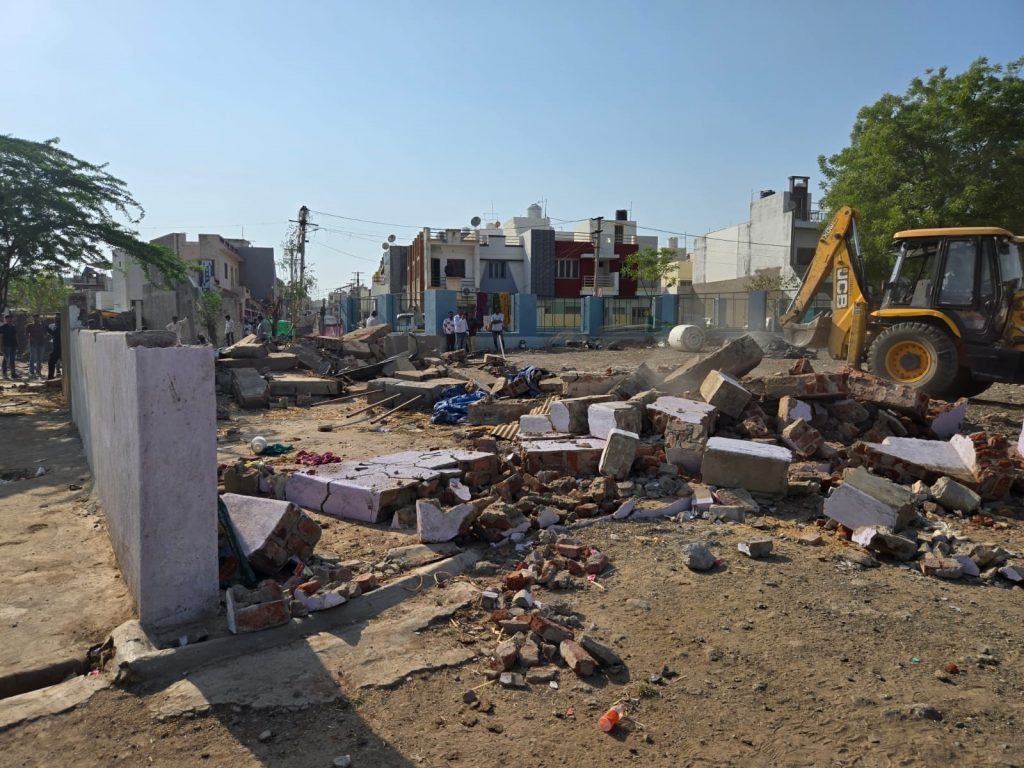 જેમાં એક ઓફિસ, બે ઓરડી તેમજ એક તબેલા ઉપર બુલડોઝર ફેરવી દેવામાં આવ્યું હતું. અહીંથી ગેરકાયદે વીજજોડાણ પણ મળી આવતા તેને કાપી નાખવામાં આવ્યું હતું. આ ઉપરાંત ટાઉનપ્લાનીગ શાખા દ્વારા જકંશન પ્લોટ વિસ્તારમાં સીધી કોલોનીમાં ગેરકાયદે રહેણાંક બાંધકામ દુર કરી અદાંજે 1100 ચોરસ મીટર જમીન ખુલ્લી કરવામાં આવી હતી.