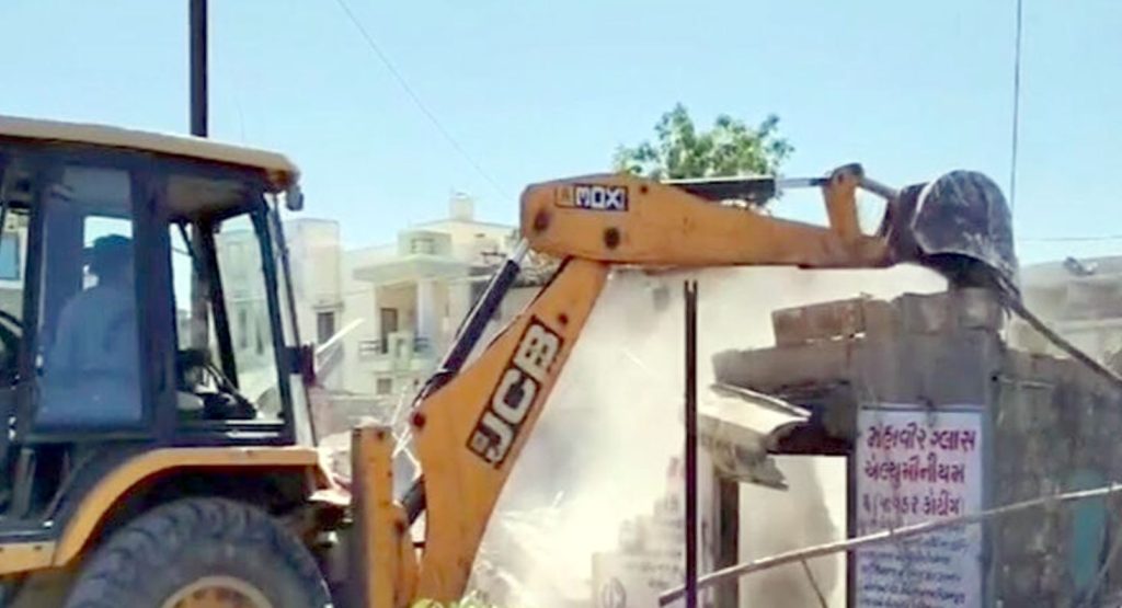 ખાપટ વિસ્તારમાં પાંચ કરોડથી વધુની કિંમતની જમીનમાં કરેલા દબાણોમાં બુલડોઝર એક્શન ચલાવવામાં આવ્યું હતું. જેમાં રહેણાંક અને કોમર્શિયલ મિલકતોનો સમાવેશ થાય છે. સરકારી જમીન ઉપર પેશકદમી કરવામાં આવી હતી તો આજે ગુરુવારે પણ આ બુલડોઝર એક્શન જોવા મળ્યુ હતુ. આ કાર્યવાહી પોરબંદરના ભાજપ કાર્યાલયની સામે એટલે કે કોલેજ રોડ અને પરશુરામ માર્ગ તરીકે ઓળખાતા આ માર્ગ પર ગેરકાયદેસર ઘર નજીક વંડા, દુકાન નજીક ઓટલાઓ જે બાંધવામાં આવ્યા તેના કારણે ફૂટપાથ પર મોટાપાયે દબાણ થઇ ગયુ હતુ. આ દબાણને દૂર કરવા માટે મહાનગરપાલિકા ગઇકાલે બપોરે પોલીસ બંદોબસ્ત સાથે પહોંચી હતી જેમાં ત્રણ જેસીબી અને ટ્રેકટર વડે 20 જેટલા વંડા દબાણો કર્યા હતા તેને તોડી પાડવામાં આવ્યા છે.