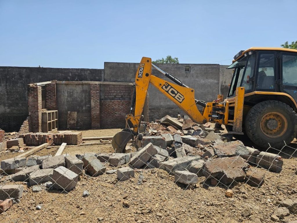 રાજકોટ જિલ્લા એસપી હિમકર સિંહના માર્ગદર્શનમાં છેલ્લા કેટલાક દિવસોથી અસામાજિક ગુંડા તત્વો સામે પોલીસ કાર્યવાહી કરી રહી છે. ત્યારે ગોંડલ શહેર બી ડિવિઝન પોલીસ મથક વિસ્તારમાં આવેલ ગેરકાયદે કરેલ બાંધકામો અને સરકારી જમીનો પર કરેલા દબાણો પર બુલડોઝર ફરી વળ્યું હતું.