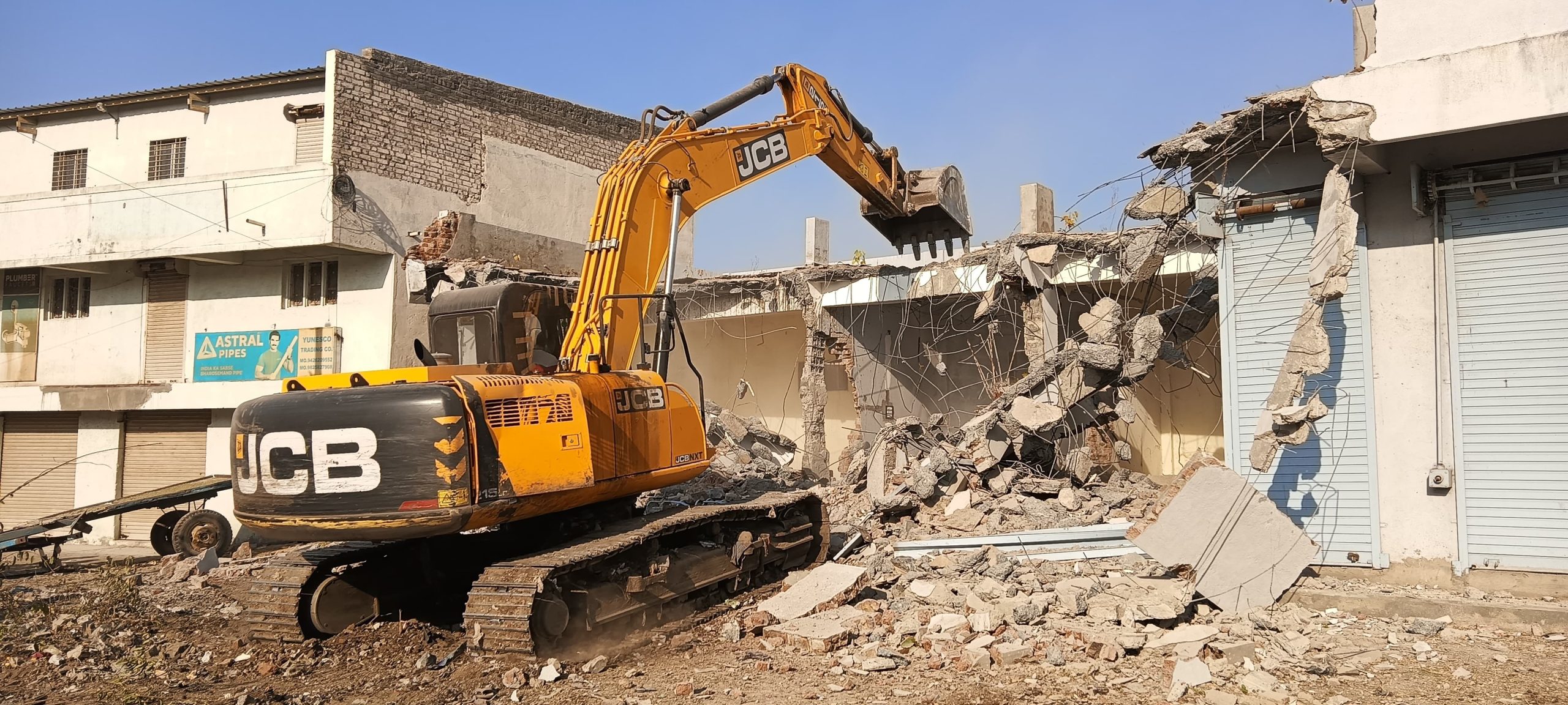 જામનગરમાં જૂની ગેલેક્સી ટોકીઝ નજીકના વિસ્તારમાં એક આસામી દ્વારા મહાનગરપાલિકાની કોઈ પણ પ્રકારની મંજૂરી વિના ગેરકાયદે રીતે ખડકી દેવામાં આવેલી 12 જેટલી દુકાનો પર બુલડોઝર ફેરવી દઈ ડીમલેશન કરવામાં આવ્યું હતું, ત્યારે ભારે પોલીસ બન્દોબસ્ત રાખવામાં આવ્યો હતો.