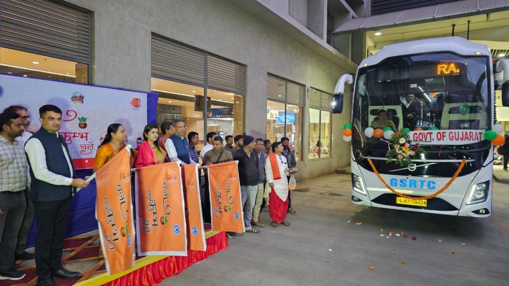શ્રદ્ધાળુઓને ઉત્તરપ્રદેશના પ્રયાગરાજ ખાતે મહાકુંભ મેળામાં જવાની સુવિધા આપવા મુખ્યમંત્રી ભૂપેન્દ્ર પટેલ તથા વાહન વ્યવહાર મંત્રી હર્ષ સંઘવીના માર્ગદર્શનમાં રાજ્ય સરકાર દ્વારા નવીન વોલ્વો બસ સેવા શરૂૂ કરવા આવી છે. જે અન્વયે તા.4 ફેબ્રુઆરીના રોજ રાજકોટ મેયર નયનાબેન પેઢડીયા તેમજ ધારાસભ્ય સર્વે ડો. દર્શિતાબેન શાહ અને રમેશભાઈ ટીલાળા દ્વારા રાજકોટથી પ્રયાગરાજની ખાસ પેકેજ બસનું શાસ્ત્રોક્ત વિધિથી પૂજન કર્યા બાદ લીલી ઝંડી આપીને પ્રસ્થાન કરાવવામાં આવ્યું હતું.