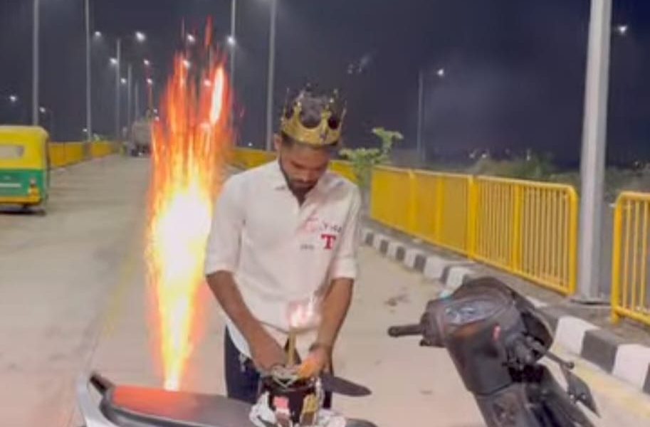 જાહેર રસ્તાઓ પર વાહન વ્યવહાર રોકી બર્થ-ડે ઉજવવાનો વિડિયો અવાર-નવાર સોશિયલ મિડિયામાં વાયરલ થઇ રહયા છે ત્યારે જાહેરમાં રસ્તા વચ્ચે સ્કુટર રાખી કેક કાપી ફટાકડા ફોડી જન્મદિવસની ઉજવણી કરતો વિડિયો સોશિયલ મિડિયામાં વાયરલ થયો છે. વાયરલ વિડિયો રાજકોટના નવા દોઢસો ફુટ રીંગ રોડનો હોવાનુ માનવામાં આવી રહયું છે. આ વિડિયો વાયરલ થતા પોલીસે તપાસનો ધમધમાટ શરૂ કર્યો છે.