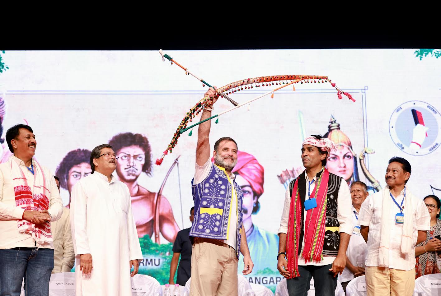 સંમેલનમાં રાહુલ ગાંધીએ કહ્યું કે, સંવિધાન ખાલી એક બુક નથી, પણ આ દેશનો વિચાર અને દરેક નાગરિકોના અધિકારની ગેરંટી છે. જેમાં હજારો વર્ષ જૂનો વિચાર સામેલ છે. તેમણે આરોપ લગાવ્યો કે પ્રધાનમંત્રી નરેન્દ્ર મોદી સહિત ભાજપના નેતા એક તરફ મહાન નેતાની મૂર્તિઓ સામે સન્માન આપે છે, પણ બીજી તરફ આદિવાસીઓના અધિકારોને નબળા પાડે છે.