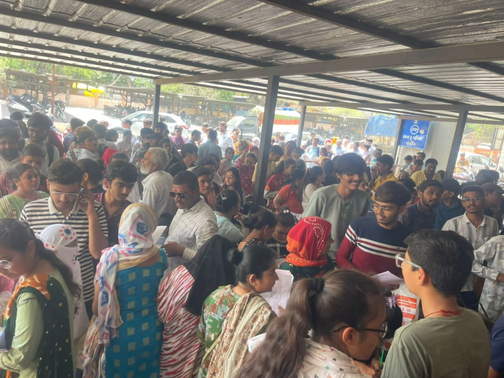 શિક્ષણ બોર્ડ દ્વારા ધો.10 અને ધો.12ની પરીક્ષાનું પરિણામ જાહેર કરવામાં આવ્યુ હતુ. પરીણામ બાદ હાલ કોલેજો અને શાળામાં પ્રવેશ પ્રક્રિયા શરૂ થઇ હોવાથી બહુમાળી ભવનમાં જાતિનો દાખલો અને નોન ક્રિમીલર સર્ટીફિકેટ કઢાવવા માટે અરજદારોની બાળકો સાથે લાંબી કતાર લાગી છે. અસહ્ય બફરામાં પતરા નીચે કલાકો સુધી વાલીઓ-બાળકો ઉભા રહેવા મજબુર થયા હોવાની રાવ ઉઠવા પામી છે.
