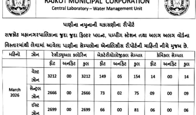 મનપાની વોટર વર્કસ શાખાએ લીધેલા સાત સેમ્પલમાં ભયાનક બેકટેરિયા હોવાનો ચોંકાવનારો રિપોર્ટ રાજકોટમાં પાણીજન્ય રોગચાળાએ અજગરભરડો લીધો હોવાનો મનપાની જ આરોગ્ય શાખાના સતાવાર પખવાડિક રિપોર્ટમાં…