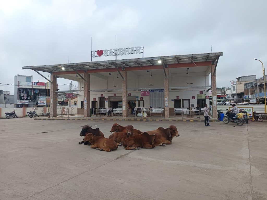 ગુજરાતના અનેક એસ.ટી બસ સ્ટેશન કરોડો રૂૂપિયાના ખર્ચે બનાવ્યા બાદ લોકાર્પણો કર્યા બાદ થોડા સમયમાં જ ઢોરવાડા બની જાય છે. ઢોર અને કુતરાના અડિંગા જોવા મળે છે. અગાઉ ગોંડલ અને ભાવનગર એસટી બસ સ્ટેશનમાં પ્લેટફોર્મ પર મુસાફરો બેસવાની જગ્યાએ કુતરા આંટા મારતા હતા. અને પ્લેટફોર્મ પર ખુટીયા આંટા મારતા જોવા મળ્યા બાદ રાજકોટમાં પણ ડાઘીયા કુતરા ના આટા ફેરા જોવા મળ્યા હતા. આવું જ એક વધુ એસ.ટી બસ સ્ટેશન સરધાર નું એસ.ટી બસ સ્ટેશન છે કે જ્યાં હજારોની સંખ્યામાં મુસાફરોની અવરજવર રહે છે અને અમરેલી, લાઠી, ભાવનગર, જસદણ, વિછીયા, મહુવા, પાલીતાણા, તળાજા તરફ અવરજવર કરતી અનેક બસો આ એસ.ટી બસ સ્ટેશનમાં દિવસના સમય દરમિયાન આવી રહી છે. રાત્રે બસો આવતી નથી બારોબાર નીકળી જાય છે.