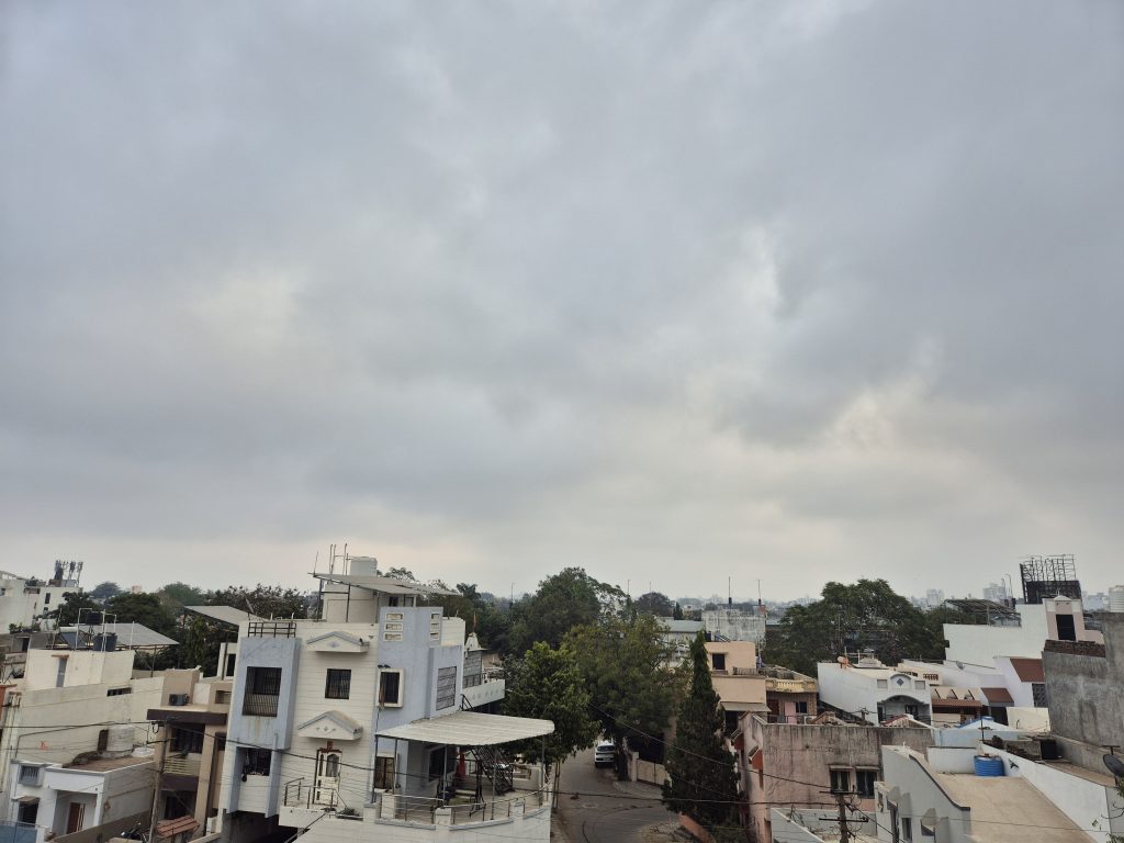 આકાશમાં ગોરંભાયેલા વાદળો સાથે સવારથી ઠંડા પવનો પણ ફુંકાવા લાગ્યા હતા. જો કે, સવારે 9-30 વાગ્યા બાદ વાદળા વિખેરાયા હતા અને આકરો તાપ નીકળ્યો હતો.