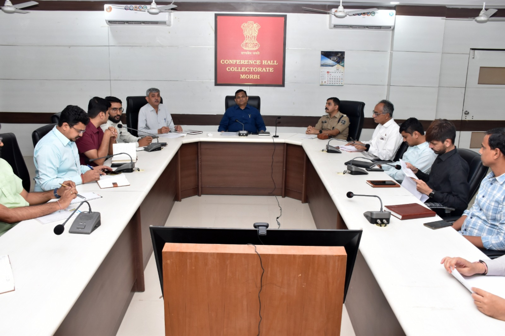 ગુજરાતના મુખ્યમંત્રી ભૂપેન્દ્રભાઈ પટેલની આગામી 26 માર્ચના રોજ મોરબી જિલ્લાની સંભવિત મુલાકાત બાબતે તૈયારીઓના ભાગરૂૂપે મોરબી જિલ્લા કલેક્ટર કે.બી. ઝવેરીની અધ્યક્ષતામાં બેઠક યોજાઈ હતી.