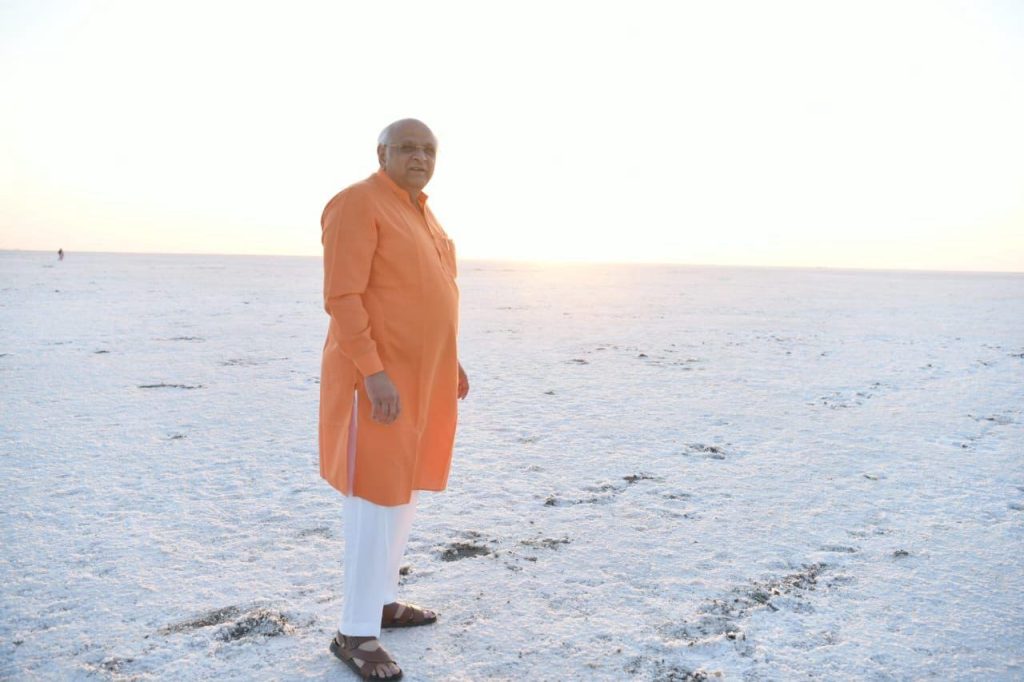 કચ્છના સફેદ રણમાં ઊંટગાડીની સવારી કરતા મુખ્યમંત્રી