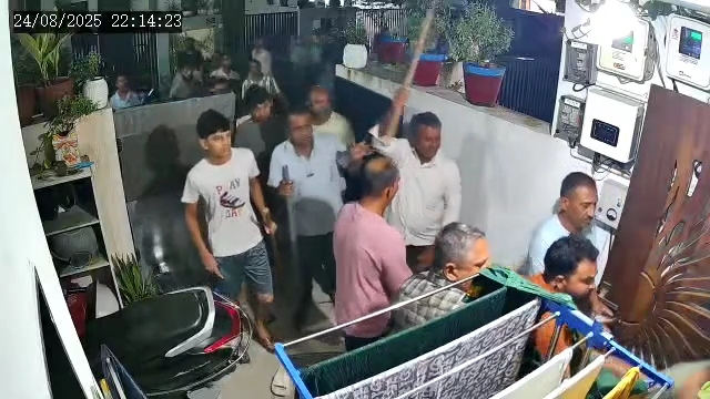 નવાગામ(આણંદપર)માં વ્રજવીલા રેસીડેન્સીમાં પાણીના છાંટા ઉડવા બાબતે ગાડી ધ્યાનથી ચલાવવાનું કહેતા બે પરિવાર વચ્ચે લાકડી,ધોકા અને ગુપ્તિ વડે મારામારી થઈ હતી.આ ઘટના સોશિયલ મીડિયામાં વાયરલ થતા બંને પક્ષ વિરુદ્ધ સામસામી ફરિયાદ નોંધાઈ હતી. મળતી વિગતો મુજબ,વ્રજ રેસિડેન્સીમાં રહેતા પ્રવિણભાઇ કાનજીભાઈ ડાભી(ઉ.વ.58)એ મહેન્દ્ર ભાઈ રાઠોડ,તેમના પત્ની ગીતાબેન અને પુત્ર જતીન અને અજાણ્યા શખ્સો વિરુદ્ધ ફરિયાદ નોંધાવી હતી.પ્રવીણભાઈએ ફરિયાદમાં જણાવ્યું હતું કે,ગઇ તા.24/08 ના રોજ બપોરના હુ સોસાયટીમાં રહેતા મારા મિત્રોને મળવા માટે ચાલીને જતો હતો ત્યારે સામેથી અમારા સોસાયટીમાં રહેતા મહેન્દ્રભાઇ તેની ગાડી લઇને આવતા હતા એવામાં 2સ્તામાં ભરાયેલ ખાબોચીયામાં ગાડી ચાલતા મને પાણીના છાંટા ઉડતા મે તેમને ધ્યાનથી ચલાવવાનુ કહેતા મહેન્દ્રભાઇ મારા સાથે મનફાવે તેમ બોલવા લાગેલ અને મારો કોલર પકડી લીધેલ એવામાં મારી બાજુમાં જ રહેતા મારા સગા નાના ભાઇ હેમંતભાઇ તથા તેમના પત્ની પણ ત્યાં આવી ગયા હતાં.