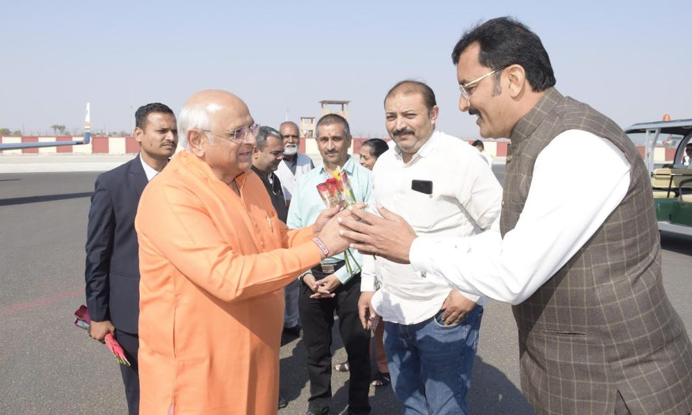 રાજ્યના મુખ્યમંત્રી ભૂપેન્દ્રભાઈ પટેલનું જામનગર એરપોર્ટ ખાતે આગમન થતાં મહાનુભાવો દ્વારા તેમનું ઉષ્માભેર સ્વાગત કરવામાં આવ્યું હતું. મુખ્યમંત્રી આજે રાજકોટ જિલ્લામાં આયોજિત એક કાર્યક્રમમાં હાજરી આપી ધોરડો જવા રવાના થશે. આ દરમિયાન જામનગર એરપોર્ટ ખાતે તેઓએ ટૂંકું રોકાણ કર્યું હતું.