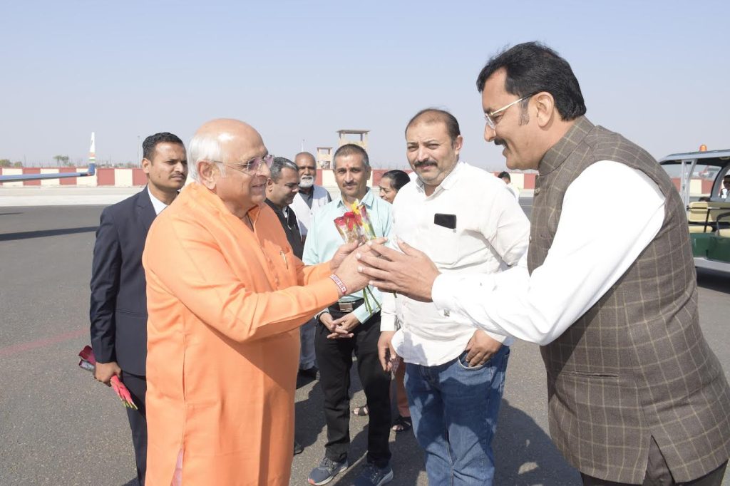 રાજ્યના મુખ્યમંત્રી ભૂપેન્દ્રભાઈ પટેલનું જામનગર એરપોર્ટ ખાતે આગમન થતાં મહાનુભાવો દ્વારા તેમનું ઉષ્માભેર સ્વાગત કરવામાં આવ્યું હતું. મુખ્યમંત્રી આજે રાજકોટ જિલ્લામાં આયોજિત એક કાર્યક્રમમાં હાજરી આપી ધોરડો જવા રવાના થશે. આ દરમિયાન જામનગર એરપોર્ટ ખાતે તેઓએ ટૂંકું રોકાણ કર્યું હતું.