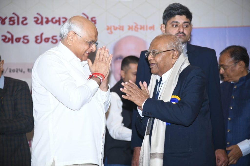 ગુજરાત રાજ્યના મુખ્યમંત્રી ભુપેન્દ્રભાઈ પટેલની ઉપસ્થિતિમાં આજરોજ રાજકોટ ખાતે ગ્રેટર ચેમ્બર ઓફ કોમર્સ એન્ડ ઈન્ડસ્ટ્રીઝ દ્વારા ત્રિવિધ કાર્યક્રમોનુ આયોજન કરવામાં આવ્યું હતું.