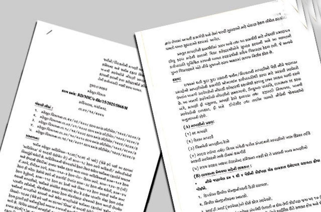 જમીન માપણીના કામમાં સરળતા લાવવા અને ફાઇલોના ચક્કરનું ભારણ ઘટાડવા ગુજરાત સરકારે મહત્ત્વનો નિર્ણય લીધો છે. હવે ખાનગી લાયસન્સી સર્વેયરોને લાયસન્સ જારી કરવાની સત્તા જિલ્લા કલેક્ટર સોંપી દેવામાં આવી છે. 4 ડિસેમ્બર 2025થી નવો નિયમ લાગુ કરી દેવામાં આવ્યો છે. આ સુધારાથી જમીન માપણી જિલ્લા સ્તરે ઝડપી બનશે તેમજ જવાબદેહી સુનિશ્ચિત થશે.