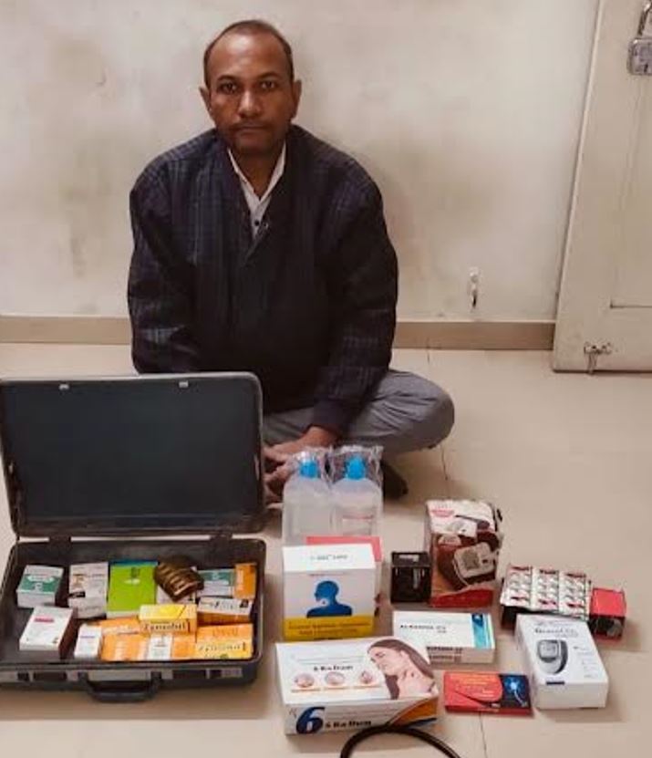 તેમજ ત્યાં ખુરશી ઉપર સ્ટેથોસ્કોપ અને ઈન્જેક્શનો તેમજ બ્લડ પ્રેશર માપવાનુ મશીન પડેલ હતું. આરોપી પાસે મેડીકલ પ્રેકટીશ કરવા અંગે ડીગ્રી સર્ટીફીકેટ બાબતે પૂછતાં મેડિકલ સર્ટી નહી હોવાનુ જણાવેલ અને પોતે બી.કોમ. સુધીનો અભ્યાસ કરેલ હોવાનુ જણાવેલ હતું. ઉપરાંત કબુલાત આપેલ કે,દર્દીઓને તપાસી એલોપેથીક દવાઓ આપે છે.તેમજ ઇન્ડોર પેસન્ટ તરીકે દર્દીઓને બાટલા ચઢાવી સારવાર કરે છે.તેમજ રાજકોટમાં ખાનગી હોસ્પિટલમાં કમ્પાઉન્ડર તરીકે કરેલ નોકરીના અનુભવથી એકાદ વર્ષથી દવાખાનું ખોલો લોકોના આરોગ્ય સાથે ચેડાં કરતો હતો.કોઈપણ જાતની મેડિકલ ડિગ્રી વગર લોકોના આરોગ્ય સાથે ચેડાં કરતાં શખ્સની ધરપકડ કરી અલગ અલગ પ્રકારની દવાઓ અને સાધનો મળી કુલ રૂૂ.12,620 નો મુદામાલ કબ્જે કરી કાર્યવાહી કરી હતી.
