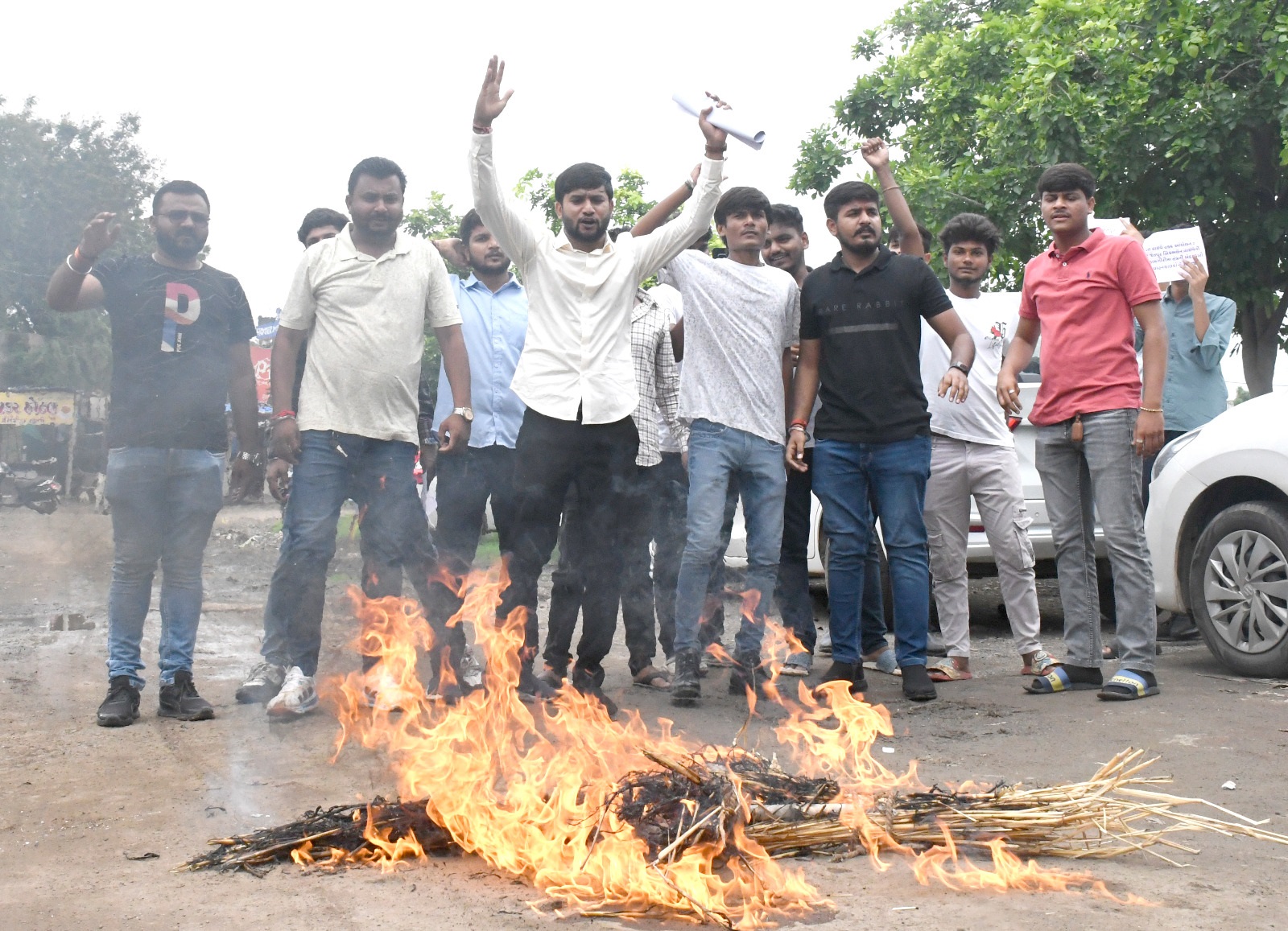 પ્રોજેકટ ડાયરેકટરના પૂતળાનું દહન, ભ્રષ્ટાચાર વિરોધી ઉગ્ર સૂત્રોચ્ચાર