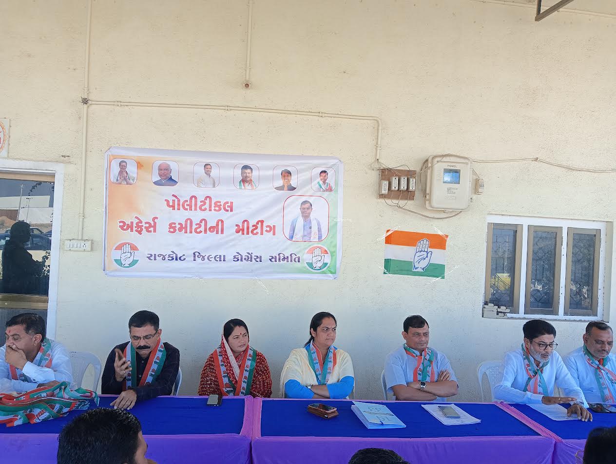 રાજય માં નજીકના ભવિષ્યમાં સ્થાનિક સ્વરાજયની ચૂંટણીઑ આવી રહી છે ત્યારે ગુજરાત પ્રદેશ કોંગ્રેસ સમિતિના પ્રમુખ અમિતભાઈ ચાવડાની સૂચના અનુસાર રાજકોટ જિલ્લા કોંગ્રેસ સમિતિ ની પોલિટિકલ અફેર્સ કમિટી (PAC) ની મીટીંગ તારીખ 19 ને શુક્રવાર ના રોજ સવારે 11:00 કલાકે જિલ્લા કોંગ્રેસ કાર્યાલય ખાતે યોજાઈ. જેમાં મુખ્ય પાંચ મુદાઓની ચર્ચા કરવામાં આવી હતી. જેમાં સ્થાનિક સ્વરાજયની ચૂંટણી તાલુકા પંચાયત – જિલ્લા પંચાયત માટે ઉમેદવારોની પસંદગીની પ્રક્રિયાની અંગેની કામગીરી હાથ ધરવા અંગે નિર્ણય લેવામાં આવ્યો હતો તેમજ ચૂંટણી પંચ દ્વારા મતદાર યાદીમાં વિશેષ સઘન સુધારણા (SIR) ની પ્રક્રિયા ચાલી રહી છે ત્યારે મતદાર યાદીમાં વિશેષ સઘન સુધારણા (SIR) ની કામગીરીની સમીક્ષા કરવામાં આવી હતી.