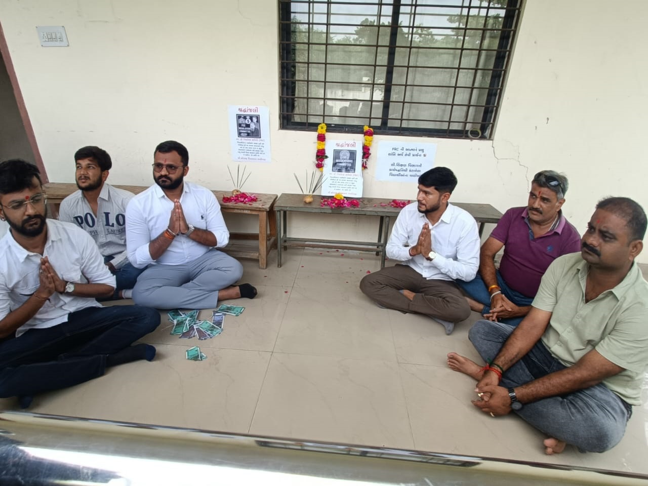 જેમાં FRCકમિટીનું બેસણું કરવામાં આવ્યું હતું અને ફી નયમન સમિતિના હાડપિંજર સમક્ષ અગરબત્તી કરી તેને શ્રદ્ધાંજલિ પાઠવવામાં આવી હતી. સામાન્ય રીતે શ્રદ્ધાસુમન પુષ્પો અર્પીને કરવામા આવતો હોય છે પરંતુ કોંગ્રેસના કાર્યકરો દ્વારા ખોટી ચલણી નોટો અર્પીને શ્રદ્ધાંજલિ અર્પી અનોખો વિરોધ કરવામા આવ્યો હતો.આ વિરોધનો હેતુ છે કે સરકાર આ સમસ્યાને ગંભીરતાથી લઇ તાત્કાલિક નવા ચેરમેનની નિયુક્તિ કરે અને વાલીઓ અને વિદ્યાર્થીઓના હિતને પ્રાથમિકતા આપે તે છે.