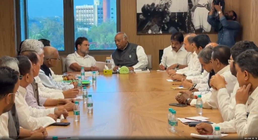 કોંગ્રેસ અધ્યક્ષ મલ્લિકાર્જુન ખડગેની અધ્યક્ષતામાં પાર્ટીના ટોચના નેતૃત્વએ તેના નવા કાર્યાલય ઈન્દિરા ભવનમાં તેના તમામ મહાસચિવો અને પ્રભારીઓ સાથે 3 મહત્વપૂર્ણ બેઠક યોજી હતી. જેમાં વ્યૂહરચના અંગે વિગતવાર ચર્ચા કરવામાં આવી હતી. આ બેઠકમાં સાંસદ રાહુલ ગાંધી અને સંગઠન મહાસચિવ કે. સી. વેણુગોપાલ પણ હાજર રહ્યા હતા. બેઠકમાં નિર્ણય લેવામાં આવ્યો હતો કે પાર્ટી દેશભરના તેના જિલ્લા પ્રમુખોની બેઠક કરશે. મીટિંગ બાદ પત્રકાર પરિષદમાં મીડિયા ઈન્ચાર્જ જયરામ રમેશે આ માહિતી આપી હતી.