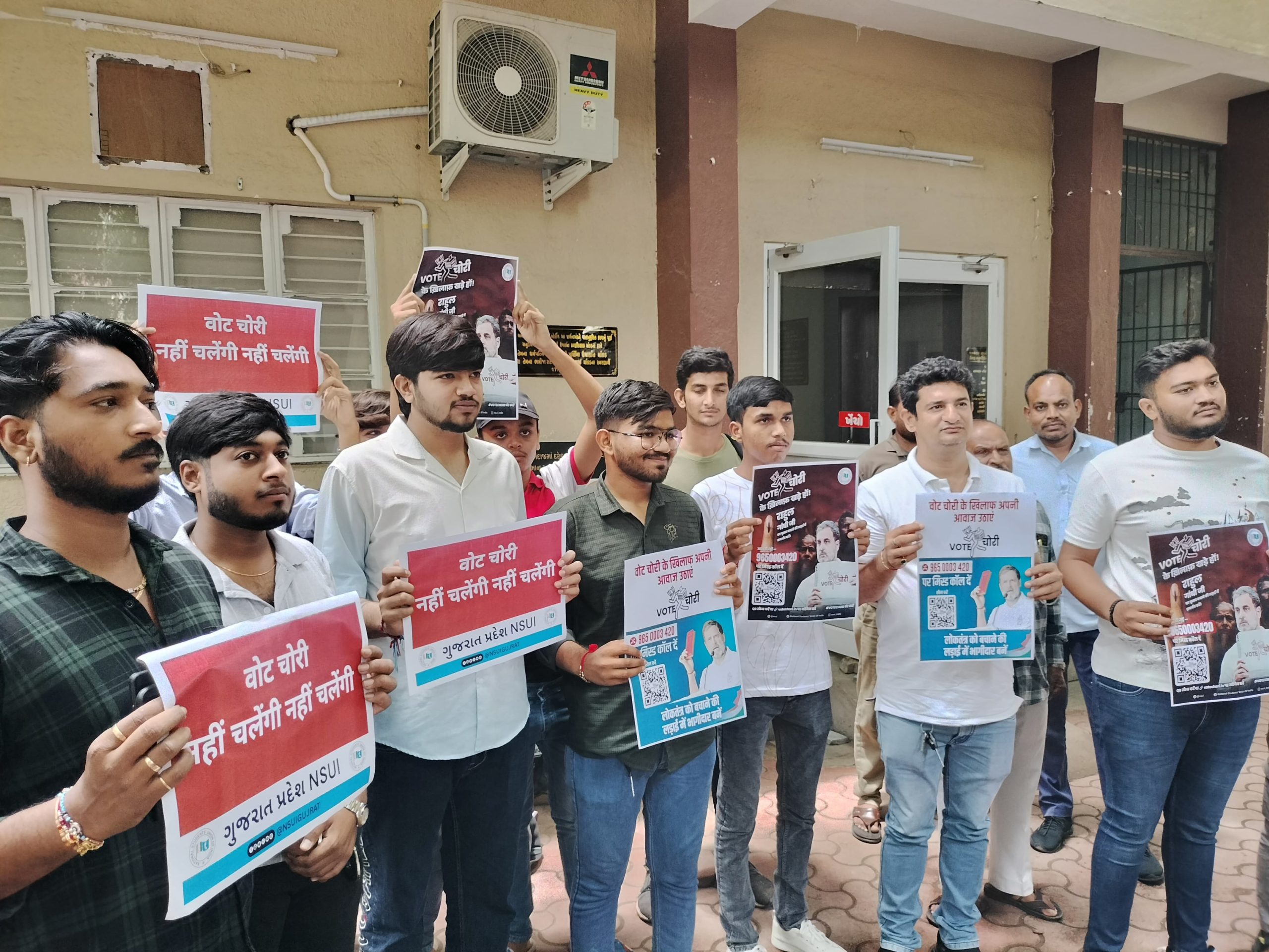 આ લડાઈ કોઈ રાજકીય પક્ષોની લડાઈ નથી પરંતુ બંધારણ અને લોકશાહી બચાવવાની લડાઈ અને ચોખ્ખી મતદાર યાદી ઇન્ડિયા ગઠબંધન ઇચ્છે છે. દેશભરમાં વોટ ચોરી અંગે હાલ હોબાળો થયેલ છે ત્યારે ગુજરાત પ્રદેશ કોંગ્રેસ સમિતિના આદેશથી રાજકોટ શહેર કોંગ્રેસ સમિતિ દ્વારા ટાગોર રોડ પર વિરાણી ચોકમાં પ્લે કાર્ડ બતાવી દેખાવો કરાયા હતા અને તમામ કાર્યકર મિત્રોમાં જનજાગૃતિ અર્થે વોટબેંક માં થતી વોટ ની ચોરી અંગેનો વિરોધ પક્ષના નેતા રાહુલ ગાંધીની જે પત્રકાર પરિષદ સંબોધવામાં આવી હતી તેનું રાજકોટના ટાગોર રોડ પરના નાગર બોર્ડિંગ ખાતે નિદર્શન કરવામાં આવ્યું હતું. અને આ કોંગ્રેસના દરેક કાર્યકરોએ જોયા બાદ હવે કોંગ્રેસના કાર્યકરો આ લડાઈ શેરી ગલી સુધી લઈ જઈ અને શાસકોને વોટ બેંકમાં થતી વોટ ચોરી અંગે પ્રજા સમક્ષ શાસકોની પોલ ઉઘાડી પાડશે.