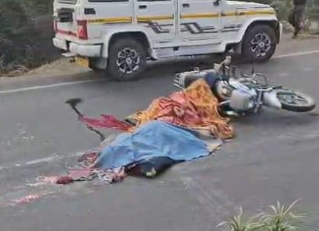 આ અકસ્માતના બનાવની વિગત એવી છે કે ખંભાળિયા તાલુકાના ધરમપુર ગામના વતની ધરમશીભાઈ કરસનભાઈ નકુમ (ઉંમર 62), કે જેઓ આજે સવારે પોતાના પત્ની વનિતાબેન (60વર્ષ) ને બાઇક માં પાછળ બેસાડીને પોતાના જી.જે.10 ડી.એલ.8490 નંબરના બાઈકમાં જામનગર થી ખંભાળિયા પોતાના વતન તરફ જઈ રહ્યા હતા.