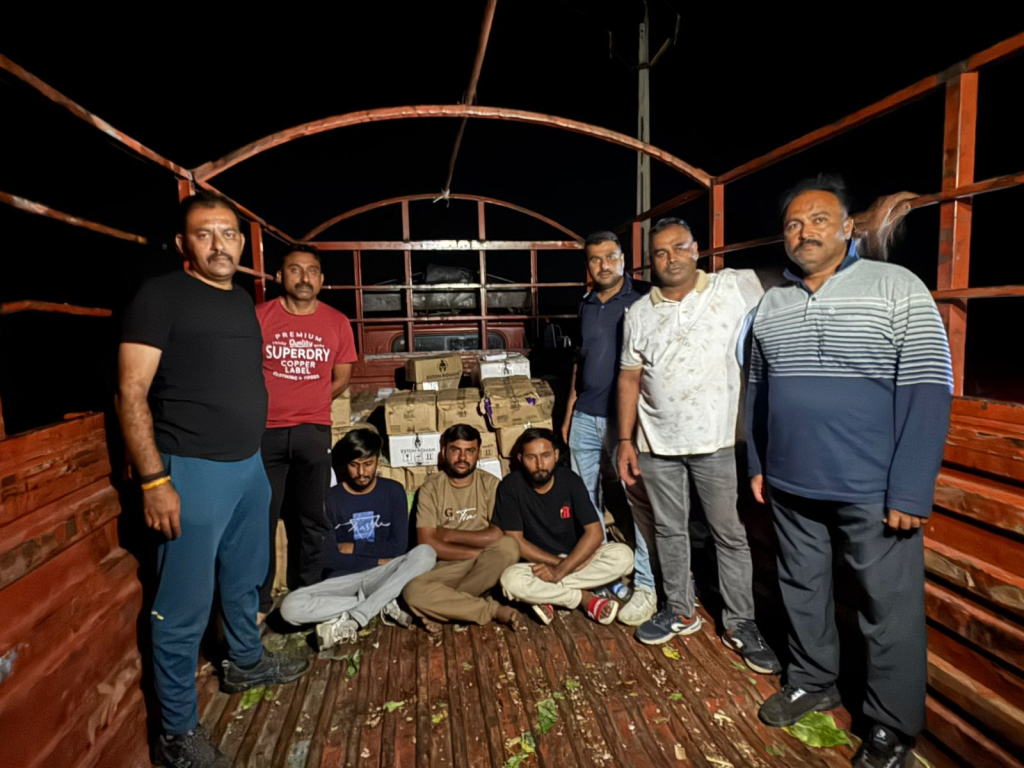 ક્રાઇમ બ્રાન્ચના પી.એસ.આઈ. ડી.પી. ઝાલાની ટીમ પેટ્રોલિંગમાં હતી ત્યારે એ.એસ.આઈ. સમીરભાઈ શેખ, કોન્સ્ટેબલ જીલુભાઈ ગરચર અને મનીષભાઈ ચાવડાને સંયુક્ત બાતમી મળી હતી. બાતમી મુજબ ઢાંઢીયા ગામની સીમમાં વિદેશી દારૂૂનો મોટો જથ્થો ઉતારવામાં આવી રહ્યો હતો, જેના આધારે દરોડો પાડીવામાં આવ્યો હતો ત્યારે સ્થળ પરથી શાકભાજીની આડમાં આઈસર ટ્રક નંબર GJ-03-BY-6675 માં દારૂૂ તેમજ GJ-06-MD-6231 અને GJ-38-BC-6175 નંબરની ફોરવ્હીલ કારમાંથી દારૂૂનું કટિંગ કરતા શખ્સોને પકડી પાડ્યા હતા. ક્રાઈમ બ્રાન્ચની ટીમે સ્થળ પરથી દિનેશ ઉર્ફે રવી છેલાભાઈ બોળીયા (ઉ.વ. 24, રહે. રૈયાધાર), નરસિંહ મનસુખભાઈ ચૌહાણ (ઉ.વ. 25, રહે. આંબેડકરનગર) અને મયુર લક્ષ્મણભાઈ પરમાર (ઉ.વ. 25, રહે. રૈયાધાર)ની ધ્રપ કરી રૂૂ.22.36 લાખની 9072 નંગ ચપલા સહીત રૂૂ.31.16 લાખનો મુદ્દામાલ કબજે કર્યો હતો. આ દરોડામાં આનંદ ઉર્ફે બાબુ રણછોડભાઈ પરમાર તેમજ આઈસર અને સ્વીફ્ટ કારના ચાલકો અને દારૂૂનો જથ્થો મોકલનાર સહીત સાતના નામ ખોલ્યા છે. જેને હાલ ફરાર જાહેર કરવામાં આવ્યા હતા.
