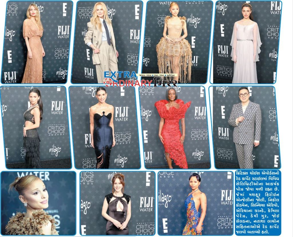 ક્રિટિક્સ ચોઇસ એવોર્ડસનો રેડ કાર્પેટ સ્ટાઇલમાં વિવિધ સેલિબ્રિટીઓના આકર્ષક પોઝ જોવા મળી રહ્યા છે. જેમાં મશહૂર હિરોઇન એન્જેલીના જોલી, નિકોલ કોડમેન, સિન્યિયા એરિવો, એરિયાના ગ્રાન્ડે, કેમિલા પેરેઝ, ડેમી મુર, જોઇ સેલડના, નતાશા લાયોન સહિતનાઓએ રેડ કાર્પેટ જલવો બતાવ્યો હતો.