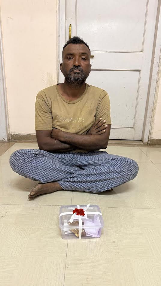 જાણવા મળતી વિગતો મુજબ, ગાંધીગ્રામ પોલીસ મથકના પીઆઇ એસ.આર.મેઘાણીની રાહબરીમાં પીએસઆઇ વી.ડી.રાવલીયા તથા તેમની ટીમ પેટ્રોલિંગમાં હતી. દરમિયાન એએસઆઈ ચેતનસિંહ ગોહિલ અને હેડ કોન્સ્ટેબલ શબ્બીર ખાન મલેકને મળેલી બાતમીના આધારે શીતલ પાર્ક ટોઈંગ સ્ટેશન પાસેથી એક શખસને શંકાસ્પદ હાલતમાં ઝડપી લીધો હતો. તેની અંગ જડતી લેતા તેની પાસેથી સોનાનો સાડા ચાર ગ્રામનો મુગટ મળી આવ્યો હતો. જેથી પોલીસે તેની અટક કરી પૂછતાછ કરતા તેણે પોતાનું નામ વિજય બહાદુર સોલંકી (ઉ.વ 46 રહે. લોહાનગર મફતિયા પરા, ગોંડલ રોડ,રાજકોટ) હોવાનું જણાવ્યું હતું. મુગટ બાબતે પૂછપરછ કરતા ગઈ તા. 10/2 ના રોજ લોહાનગર શેરી નંબર સાતમાં આવેલા ખોડીયાર માતાજીના મંદિર પરથી તેણે આ 35.590 ગ્રામ સોનાનો મુગટ ચોરી કરી લીધો હોવાની કબુલાત આપી હતી.
