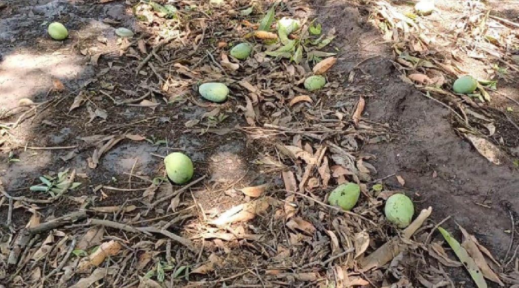 તે બજારમાં વહેંચવા માટે વેપારી ઓ ખરીદી કરવામાં આવતી નથી આ કેરી ખરી ગયેલ છે તેનો ઉપયોગ ફક્ત અથાણાં માં ઉપયોગ કરવામાં આવે તેવું કેરીના બાગ ધારક ખેડૂતો ઘ મ રાખી રહ્યા જણાવી રહ્યા છે અને ખેડૂતો સરકાર પાસે આશા રાખી રહ્યા છે નુકસાનીનું વળતર આપવામાં આવે તેવી માંગ કરવામાં આવી હતી.