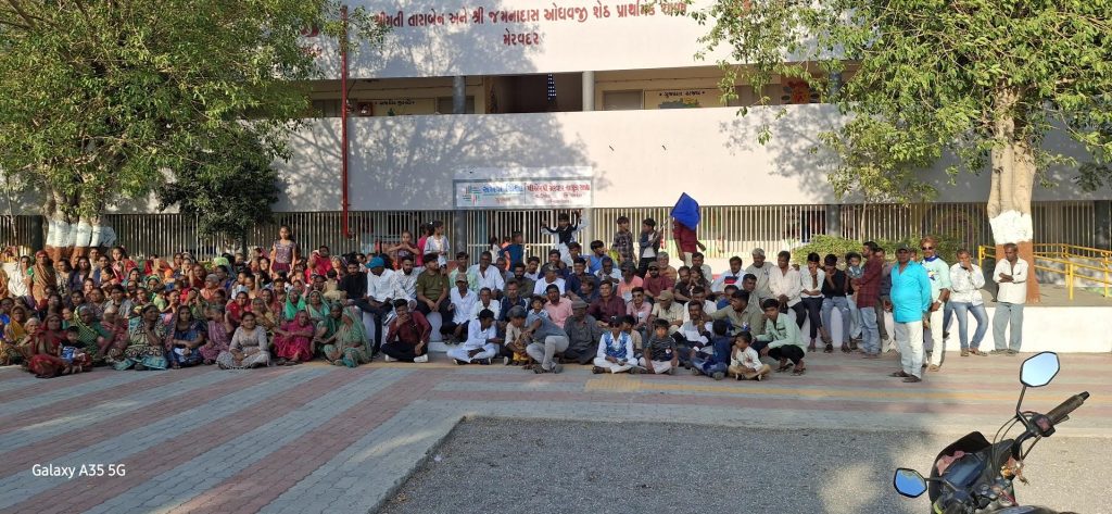 ગઈકાલે 14 એપ્રિલ ડોક્ટર બાબા સાહેબ આંબેડકર ની 143 ની જયંતિ પ્રસંગ સમગ્ર દેશ ડોક્ટર બાબા સાહેબની જયંતિ ઉજવી રહ્યો હતો તેમના ભાગરૂૂપે ઉપલેટા તાલુકાના મેરવદર ગામે પણ દલિત સમાજ દ્વારા ડોક્ટર બાબા સાહેબ આંબેડકરની જન્મ જયંતી ઉજવવાનું દર વર્ષની માફક નક્કી કરાયું હતું દર વર્ષે મેરવદર હાઈસ્કૂલમાં અને ગ્રામ પંચાયતમાં રાખેલ ડોક્ટર બાબા સાહેબની તસવીરને આ લોકો ફુલહાર કરી અને ડોક્ટર આંબેડકર સાહેબની જન્મ જયંતીને ઉજવે છે પરંતુ આ વખતે જ્યારે બાબાસાહેબને ફૂલહાર કરવા દલિતો મેરવદર હાઇસ્કુલ એ પહોંચ્યા ત્યારે મેરવદર હાઈસ્કૂલ નો મુખ્ય ગેટ બંધ હોય દલિતોને આંબેડકર જયંતિ ઉજવવા ન દેવાનો હાઈસ્કૂલના ટ્રસ્ટીઓનું આ કાવતરું હોવાનું દલિત આગેવાન છગનભાઈએ પત્રકારોને જણાવ્યું હતું અને આ બાબતનો વિવાદ થતા મેરવદર ગામે રહેતા તમામ દલિત પરિવારો હાઈસ્કૂલના પટાંગણમાં પહોંચે અને ધરણા કર્યા હતા.