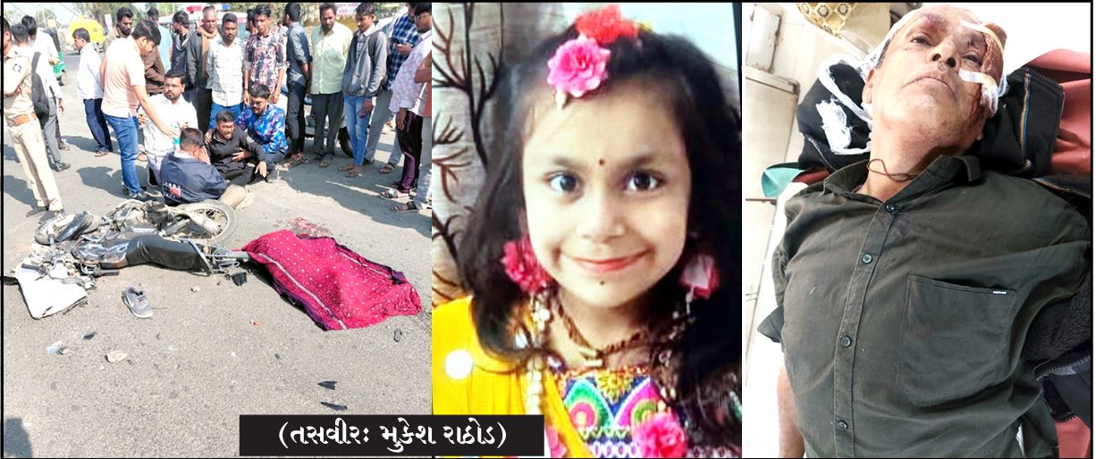 કુદરતની પણ કેવી અકળલીલા છે કે સંતાન પ્રાપ્તી ઝંખતા દંપતિને 22 વર્ષે દીકરીનો જન્મ થતાં પરિવારમાં ખુશીની લાગણી છવાઈ ગઈ હતી. જો કે દંપતિના નસીબમાં જાણે સંતાન ન હોય તેમ 7 વર્ષની થયેલી દીકરીનું પિતાની નજર સામે જ અકસ્માતમાં કરૂણ મોત નિપજતાં પરિવારમાં કલ્પાંત છવાઈ જવા પામ્યો છે. 150 ફુટ રીંગ રોડ પર જશરાજનગરમાં રહેતાં આધેડ 7 વર્ષની લાડલી પુત્રીને લઈ આંટો મારવા નીકળ્યા હતાં ને નવા રીંગ રોડ પર ટીલાળા ચોકડી નજીક કાળમુખા ડમ્પરે બાઈકને હડફેટે લેતાં અકસ્માત સર્જાયો હતો. જેમાં આધેડની નજર સામે જ તેની સાત વર્ષની પુત્રીનું ઘટના સ્થળે જ કમકમાટીભર્યુ મોત નિપજ્યું હતું. જ્યારે પિતાને પણ ઈજા થતાં સારવાર માટે હોસ્પિટલમાં ખસેડવામાં આવ્યા હતાં. આ અંગે પોલીસે ઘટના સ્થળે દોડી જઈ વધુ તપાસ હાથ ધરી હતી.