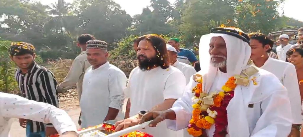 કોડીનારના 61 વર્ષીય વૃદ્ધ અને જવાનોને શરમાવે તેવી સ્ફુર્તિ અને આત્મવિશ્વાસ ધરાવતા મહમદઅલી બાપુ રફાઈ ઉર્ફે દયાવાન બાપુ કોડીનારથી આજે રવિવારે સાંજે પગપાળા સાઉદી અરબ મક્કા હજયાત્રાએ જતા હોય તેમને પ્રોત્સાહિત કરવા માટે તેમના સન્માન સમારોહનો કાર્યક્રમ મુસ્લીમ સમાજ ના જાંબાઝ અને નીડર એક સારા સામાજીક કાર્યકર અને યુવાનોનાં જેને મશિહા કહેવામાં આવતા સૈયદ સંજર બાપુ કાદરી ની નજર હેઠળ કાદરી મસ્જિદ ચોક માં રાત નાં પ્રોગ્રામ યોજાયો હતો જેમાં કોડીનાર મુસ્લીમ સમાજના આગેવાનો દ્વારા ફુલહાર કરી શાલ ઓઢાડી સન્માન કર્યું હતું મહમદઅલી બાપુ આજે સાંજે પગપાળા કોડીનારથી મક્કા હજયાત્રાએ જવા રવાના થયા હતા ત્યારે કોડીનાર હિન્દૂ મુસ્લિમ સમાજના અનેક લોકો બાયપાસ સુધી તેમની સાથે પગપાળા યાત્રામાં જોડાઈ તેમને પ્રોત્સાહિત કરી વિદાય આપિ હતી.