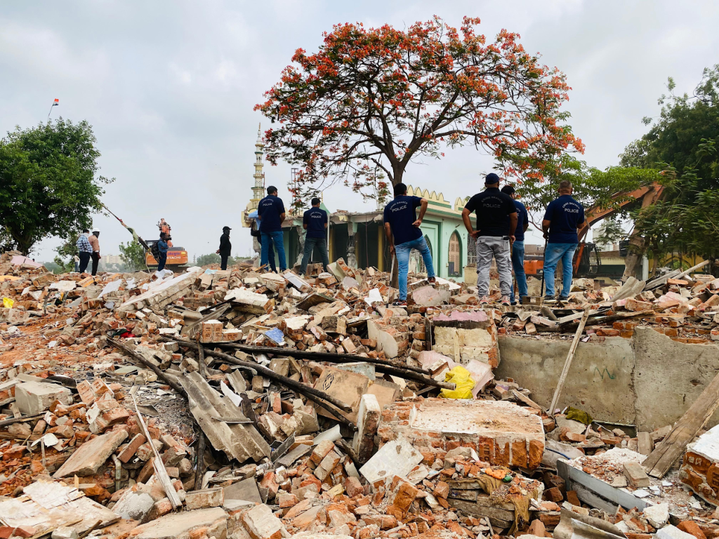 ડિમોલિશન પહેલાં ધાર્મિક વસ્તુઓ અને પુસ્તકો હટાવાયાં અમદાવાદ ક્રાઈમ બ્રાન્ચ ડીસીપી અને સેક્ટર 2 જેસીપી તેમજ ઝોન 6 ડીસીપી સહિતના ઉચ્ચ અધિકારીઓ અને 500થી વધુ પોલીસકર્મચારીઓના બંદોબસ્ત સાથે ધાર્મિક સ્થાનો તોડવાની કાર્યવાહી કરવામાં આવી રહી છે. વહેલી સવારથી જ ડિમોલિશનની પ્રક્રિયા શરૂૂ કરવામાં આવી હતી. દરેક ઝોનના અધિકારીને અલગ અલગ ધાર્મિક સ્થાન તોડવાની માહિતી આપી દેવામાં આવી હતી. 5 હિટાચી મશીન, જેસીબી સાથે મ્યુનિસિપલ કોર્પોરેશન દ્વારા ધાર્મિક સ્થાનો તોડવાની કાર્યવાહી કરવામાં આવી છે. ગરીબ નવાબ મસ્જિદ ચંડોળામાં સૌથી મોટી મસ્જિદ હતી, જેથી તેને સૌથી પહેલા ખાલી કરાવી દેવામાં આવી હતી. જેટલી પણ ધાર્મિક વસ્તુઓ અને પુસ્તકો સહિતની ચીજવસ્તુઓ હતી એને મસ્જિદમાંથી હટાવી લેવામાં આવી હતી.