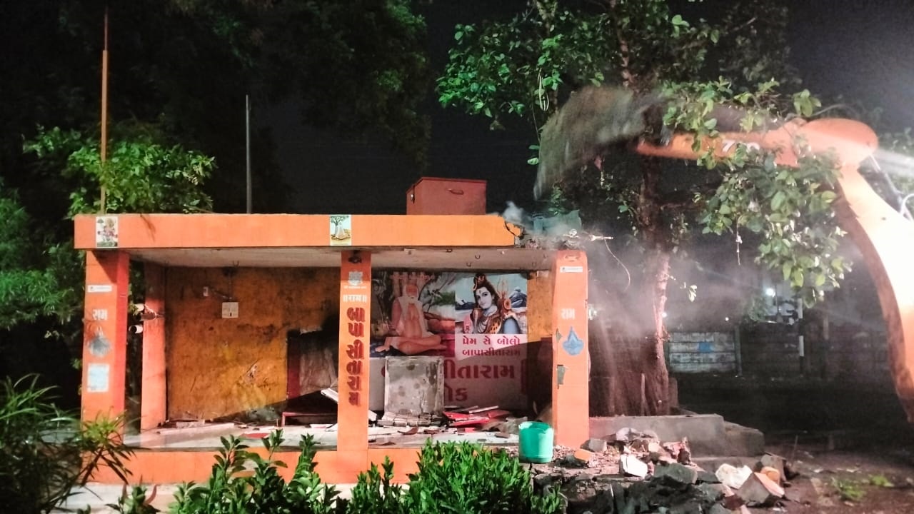 બાપા સીતારામ અને મોકાજી સર્કલના બે ધર્મસ્થળોનું અંધારામાં ડિમોલિશન