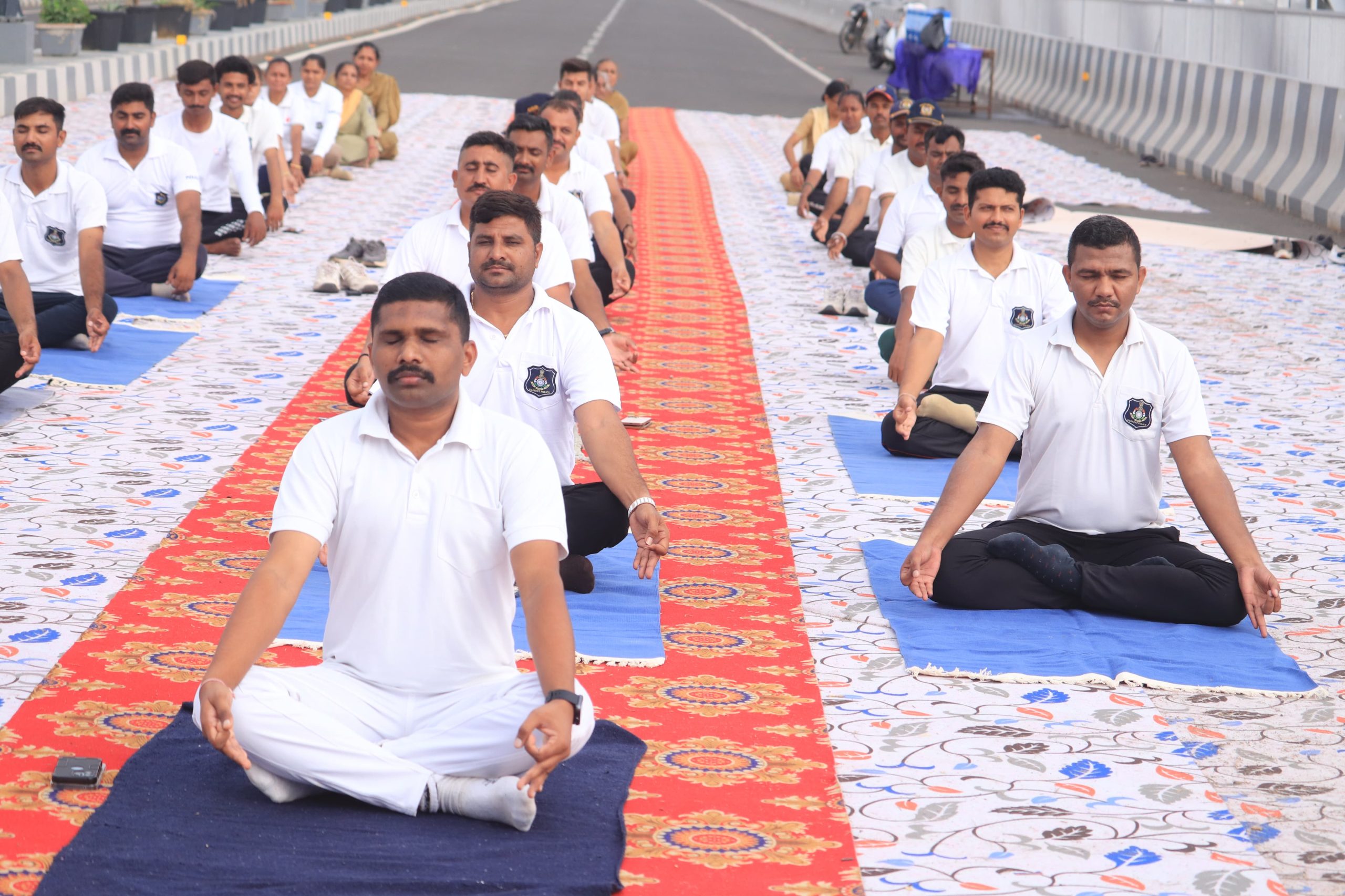 “વિશ્વ યોગ દિવસ” ની ઉજવણીમાં દેવભૂમિ દ્વારકા જિલ્લા પોલીસ દ્વારા “સ્વસ્થ દ્વારકા અને સુરક્ષિત દ્વારકા” સુત્રને સાર્થક કરવા સામાન્ય પ્રવાહથી અલગ રહેતા વર્ગો પર ધ્યાન કેન્દ્રીત કરી એક નવતર અભિગમથી લોકોમાં યોગ વિશે જાગૃતતા લાવવા પ્રયત્ન કરવામાં આવ્યો હતો. જે અંતર્ગત દ્વારકામાં મનોદિવ્યાંગ બાળકો સાથે પોલીસ દ્વારા યોગ-પ્રાણાયામ કરવામાં આવ્યા હતા. આ સાથે ખંભાળિયા અને ભાણવડમાં પોતાના પરિવારથી દૂર એકલવાયું જીવન ગુજારતા કુલ 38 સીનીયર સીટીઝનનાં ઘરે-ઘરે જઇ તેમની સાથે પોલીસ દ્વારા યોગ-પ્રાણાયામ કરી અવગત કરવામાં આવ્યા હતા. આજના મોબાઈલ યુગમાં સરકારી એસ.ટી. ડેપોમાં તેમજ એસ.ટી. બસોમાં બસનાં અધિકારી, કર્મચારીઓ તેમજ મુસાફરી કરતા યાત્રિકો સાથે નવરાશનાં સમયમાં સમયનો સદુપયોગ કરી યોગ-પ્રાણાયામ કરાવી તેનાથી થતા ફાયદા વિશે સમજ કરી જાગૃત કરવામાં આવ્યા હતા.