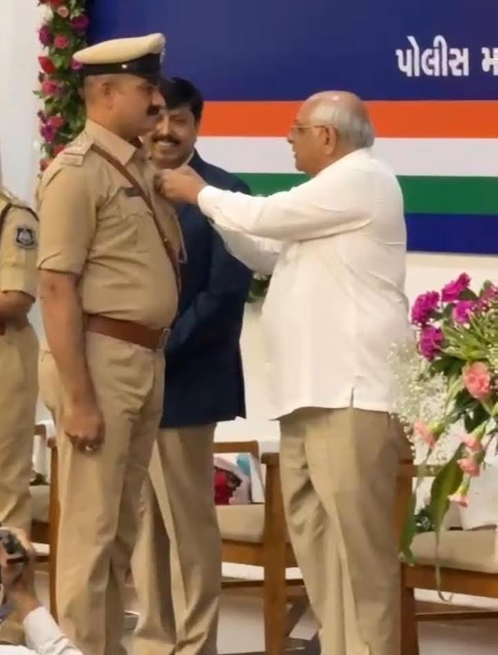 દેવભૂમિ દ્વારકા જિલ્લાના એલ.સી.બી. પી.એસ.આઈ.ને રાજ્યના મુખ્યમંત્રીના હસ્તે રાષ્ટ્રપતિ પદક સાંપળ્યો છે. જિલ્લાના એકમાત્ર અધિકારીને આ નોંધપાત્ર એવોર્ડ પ્રાપ્ત થતાં એલસીબી સાથે જિલ્લા પોલીસનું પણ ગૌરવ વધ્યું છે.