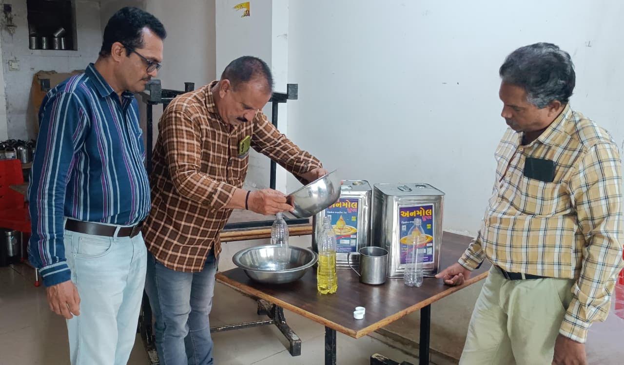 ફૂડ વિભાગ દ્વારા નમુનાની કામગીરી દરમિયાન ANMOL SUPER REFINED KAPAASIYA TEL (FROM 15 KG PKD TIN): સ્થળ -ગાયત્રી મદ્રાસ કાફે, તીર્થ એપાર્ટમેન્ટ. ગ્રા.ફ શોપ નં.01 થી 04, કાર્તિક પાર્ટી પ્લોટ, 80 ફૂટ રોડ, જૂના મોરબી રોડ પાસે, 2. મંચુરિયન (પ્રિપેર્ડ-લુઝ): સ્થળ -જીલ પીઝા બફેટ રાજકોટ કકઙ., ગ્રીનફીલ્ડ રોડ, સરીતા વિહાર પાસે, કાલાવડ રોડ, 3. પનીર બટર મસાલા (પ્રિપેર્ડ સબ્જી- લુઝ): સ્થળ -જીલ પીઝા બફેટ રાજકોટ કકઙ., ગ્રીનફીલ્ડ રોડ, સરીતા વિહાર પાસે, કાલાવડ રોડ, 4. પનીર (લુઝ): સ્થળ -અજેન્દ્ર ડેરી ફાર્મ, 8 સોરઠિયાવાડી, મહેશ સેલ્સની બાજુમાં, 5. ગાયનું દૂધ (લુઝ): સ્થળ -ગોવિંદમ ડેરી ફાર્મ, શોપ નં.05, શ્રી હરિદર્શન હાઇટ્સ, 50 ફૂટ રોડ, ડી-માર્ટ પાછળ, કુવાડવા રોડ સહિત પાંચ સ્થળેથી નમુના લેવામાં આવ્યા હતાં.