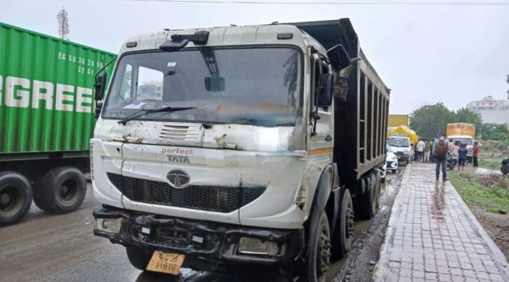 પ્રાપ્ત વિગતો અનુસાર આજે શનાળા પાસે પુલ ઉતરતા જ પીધેલી હાલતમાં રહેલા જીજે 36 વી 1010 નંબરના ડમ્પર ચાલકે એક ક્ધટેનરને ઠોકર મારી હતી. જેમાં ક્ધટેનરની ડીઝલની ટાકીમાં નુકસાન થયું હતું. બાદમાં આ ડમ્પર ચાલકે એક ઈનોવા કારને બે વખત ઠોકર મારી હતી.
