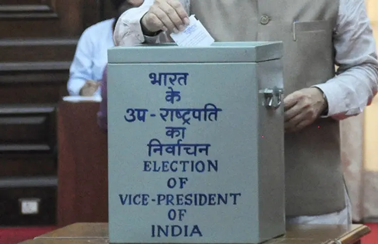 ભારતમાં, ઉપરાષ્ટ્રપતિની પસંદગી સંસદના બંને ગૃહોના સભ્યો દ્વારા કરવામાં આવે છે. આમાં, લોકસભા અને રાજ્યસભાના તમામ સાંસદો મતદાન કરે છે, પછી ભલે તેઓ ચૂંટાયેલા હોય કે નામાંકિત હોય. આ પ્રક્રિયા ગુપ્ત મતદાન દ્વારા કરવામાં આવે છે અને ઉપરાષ્ટ્રપતિની પસંદગી માટે કુલ સાંસદોની સંખ્યાના આધારે બહુમતી જરૂરી છે. મહત્વની વાત એ છે કે આ ચૂંટણી પોસ્ટલ બેલેટ દ્વારા કરવામાં આવે છે.