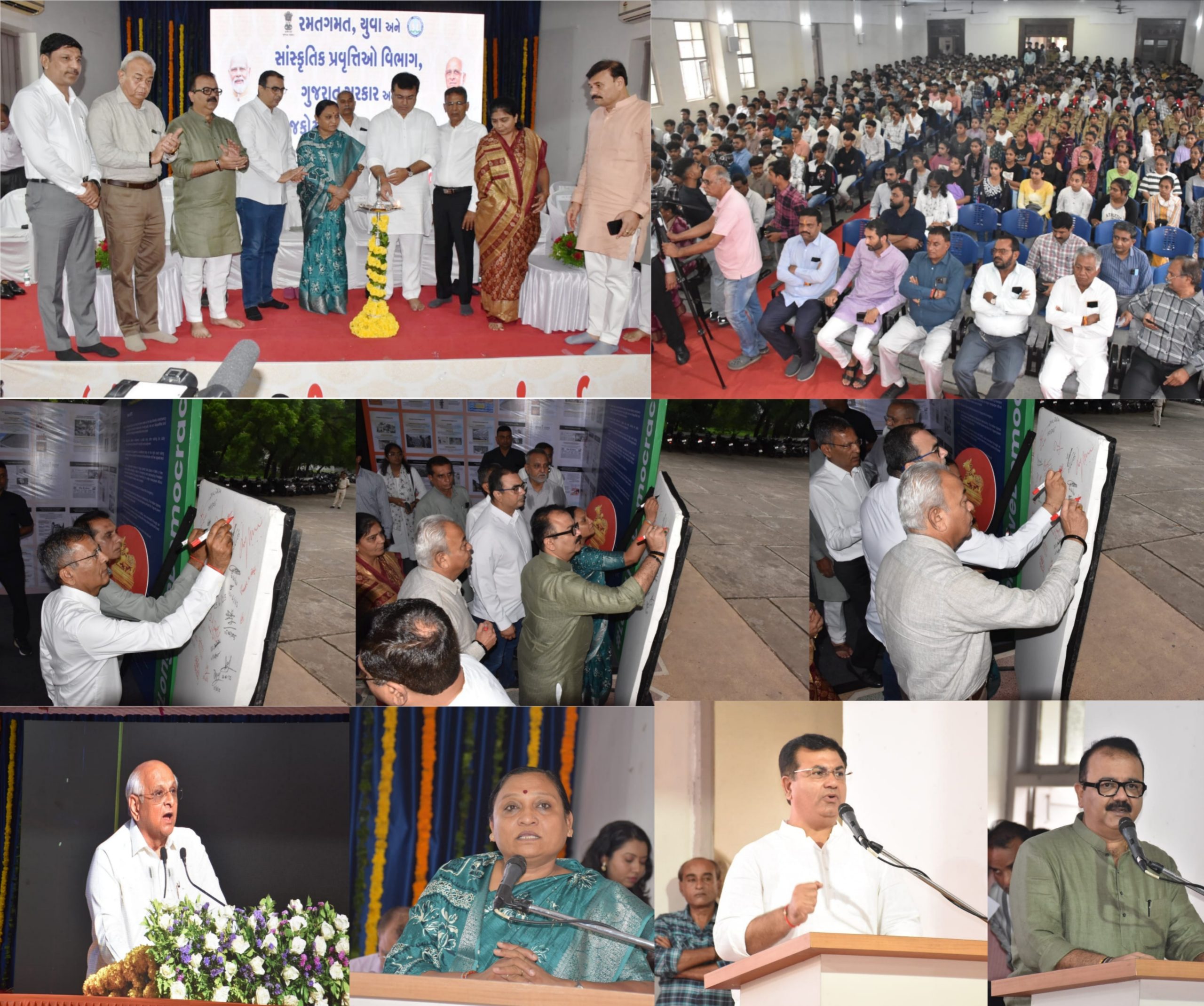 ઇ.સ.1975માં અમલી થયેલ કટોકટીના 50 વર્ષે તા.25-06-2025ના રોજ પૂર્ણ થવાના સંદર્ભમાં લોકશાહીના મૂલ્યોનું સ્મરણ કરવાના હેતુથી ભારત સરકારશ્રીના સાંસ્કૃતિક મંત્રાલય દ્વારા સંવિધાન હત્યા દિવસની ઉજવણી અંતર્ગત ગુજરાત સરકારશ્રીના રમતગમત, યુવા અને સાંસ્કૃતિક પ્રવૃત્તિઓ વિભાગ અને રાજકોટ મહાનગરપાલિકાના સંયુક્ત ઉપક્રમે તથા પી.ડી. માલવીયા કોલેજ ઓફ કોમર્સના સહયોગથી સંવિધાન હત્યા દિવસની ઉજવણી અંતર્ગત આજતા.25-06-2025ને બુધવારના રોજ સવારે 10:00 કલાકે પી.ડી. માલવીયા કોલેજ ઓફ કોમર્સ, ગોંડલ રોડ ખાતે વક્તવ્ય કાર્યક્રમ યોજાયો. જેમાં ગુજરાત રાજ્યના મુખ્યમંત્રી ભુપેન્દ્રભાઈ પટેલ ઓનલાઇન જોડાયા હતા તેમજ આજથી 50 વર્ષ પહેલા સંવિધાન સામે લાદવામાં આવેલ કટોકટી અંગેની ડોક્યુમેન્ટરી ફિલ્મ અને નાટ્યકૃતિ પ્રદર્શિત કરવામાં આવી હતી.
