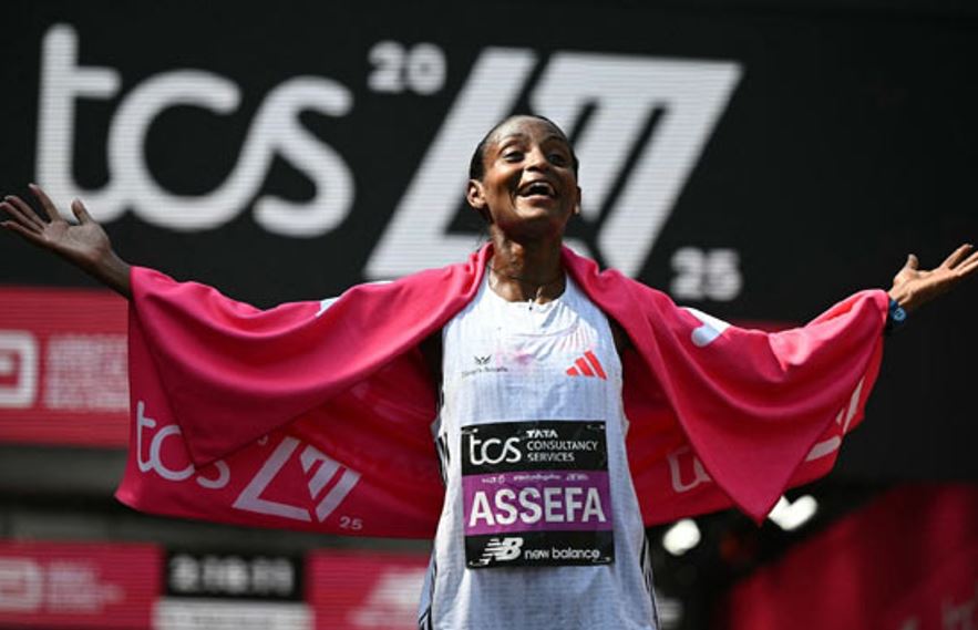 ઇથોપિયાની ટિગ્સ્ટ અસેફા અને કેન્યાની જોયસિલિન જેપકોસગેઈએ રવિવારની લંડન મેરેથોનમાં શરૂૂઆતથી જ ઝડપી ગતિ જાળવી રાખી હતી, પરંતુ અંતે અસેફાએ જોરદાર દોડ લગાવીને માત્ર મહિલાઓની રેસમાં વિશ્વ રેકોર્ડ પોતાના નામે કર્યો અને રેસ જીતી લીધી.