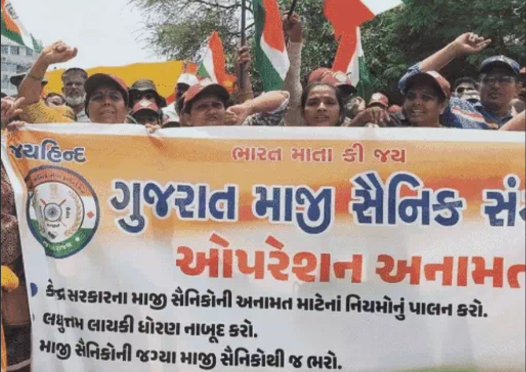ગુજરાતમાં માજી સૈનિકો દ્વારા ચાલી રહેલા ઓપરેશન અનામત આંદોલન આજે 23મા દિવસે પણ ચાલુ છે. ગાંધીનગરના સેક્ટર-6 સત્યાગ્રહ છાવણી ખાતે એકઠા થયેલા માજી સૈનિકો અને પગુજરાત માજી સૈનિક સંગઠનથ દ્વારા સૈનિક અધિકારી મહારેલીનું આહવાન કરાયું છે, જેમાં રેલી પહેલાં માજી સૈનિકોની બોચી પકડીને પોલીસે અટકાયત કરી છે. 500થી વધુ માજી સૈનિકોની અટકાયત કરાઈ છે.