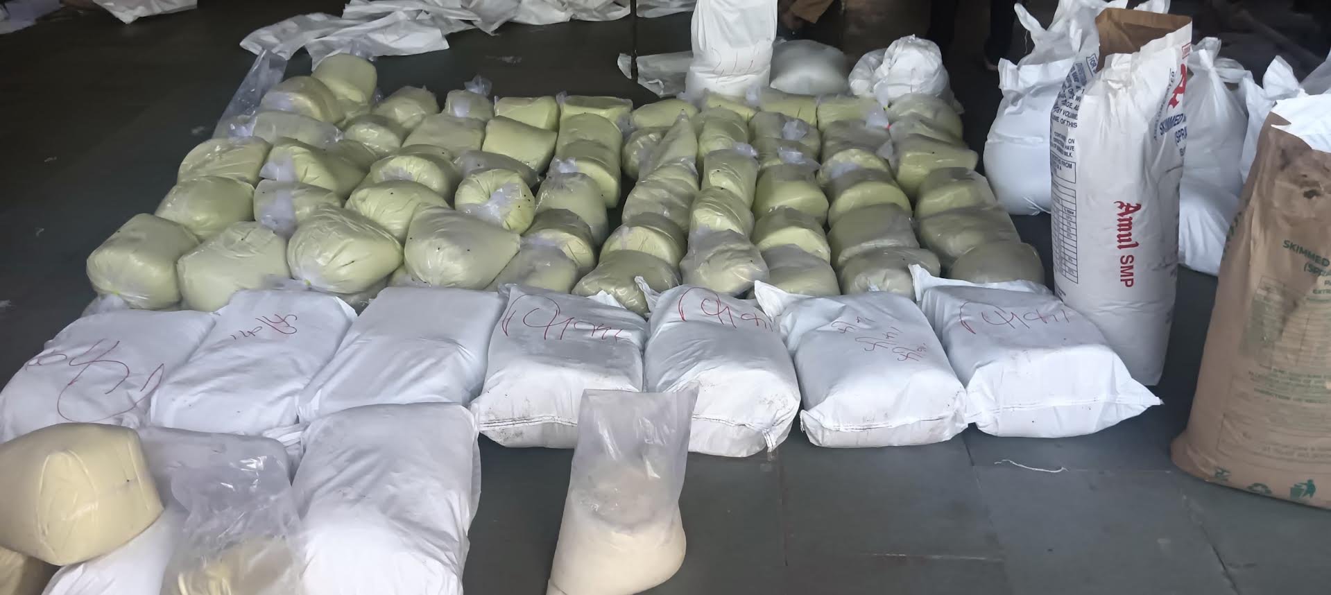 લોકલ ક્રાઈમબ્રાંચ અને જિલ્લા ફુડ વિભાગા સંયુક્ત ઓપરેશનમાં અહીંથી નેચરલ ડિલાઈટ એસએમપી 28 નંગ, અમુલ મિલ્ક પાઉડરના કટ્ટા 29 બોરી, સુમન વનસ્પતિ ઘીના ડબ્બા નંગ 7, 10 કિલોગ્રામના 74 પેકેટ અને 30 કિલોગ્રામના 16 પેકેટ મળી કુલ 1220 કિગ્રા મીઠો માવો, દુધને ફાડવા માટે અડધો કટ્ટો ફટકડી, સોયા સોસની 4 બોટલ, નુડલ્સમાં નાખવા માટે વિનેગરની 4 બોટલ તથા 300 કિલોગ્રામ મોળો માવો મળી આવ્યો હતો. આ ઉપરાંત અહીંથી ફટકડીનો ઉપયોગ કરીને બનાવેલો રૂૂ.63 હજાકની કિંમતનો 300 કિલો કણી માવો અને વનસ્પતિ ઘીનો ઉપયોગ કરી બનાવવામાં આવેલો રૂૂ. 76,800ની કિંમતનો 480 કિલોગ્રામ મળી કુલ રૂૂ.1.39 લાખની કિંમતનો કુલ 780 કિલોગ્રામ નાશપાત્ર અખાદ્ય મોળો માવો કબ્જે કરવામાં આવ્યો છે.