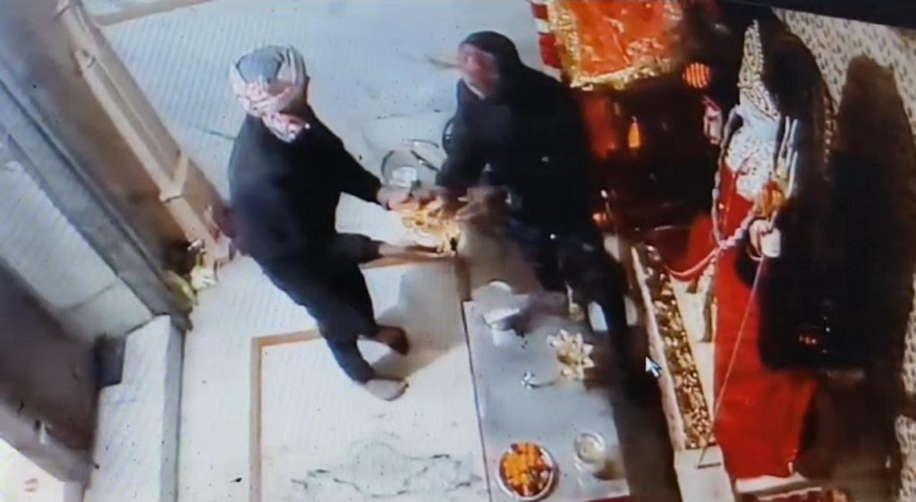 સાવરકુંડલાના નવી આંબરડી ગામે માતાજીના મંદિરમાં તસ્કરો ત્રાટક્યા હતા.3 તસ્કરો ચોરીના ઇરાદે મંદિરમાં પ્રવેશતા CCTV કેમેરા માં કેદ થયા હતા.ખોડિયાર માતાજી ની મૂર્તિ ઉપર રહેલા આભૂષણો ઉઠાવી ગયા અને તસ્કરોએ ઉઠાવેલ આભૂષણો ઇમિટેશન જવેલરી હોવાથી કિંમતી આભૂષણો બચી ગયા હોવાનું જાણવા મળ્યું હતું.સોનાની બે નથ અને બુટી મળી આભૂષણો ની ચોરી કરી ગયા હતા અને ત્રણેય તસ્કરોએ પ્રથમ માતાજીના દર્શન કરી લોકર તોડવાનો પ્રયાસ કર્યો લોકર નહિ ખુલતા નકલી આભૂષણો ઉપાડી ગયા મંદિર પરિસર માં પાર્ક કરેલ મંદિરના પૂજારી નું બાઈક તસ્કરો ઉપાડી ગયા હતા મંદિરની ઊંચી દીવાલ ઠેકાડી ને તસ્કરો બાઈક ઉપાડી ગયા હતા. આ અંગે બનાવની જાણ થતાં સાવરકુંડલા રૂૂરલ પોલીસ પી.એલ.ચૌધરી સહિત કાફલો ઘટના સ્થળે પહોંચી તપાસનો ધમધમાટ શરૂૂ કર્યો છે.