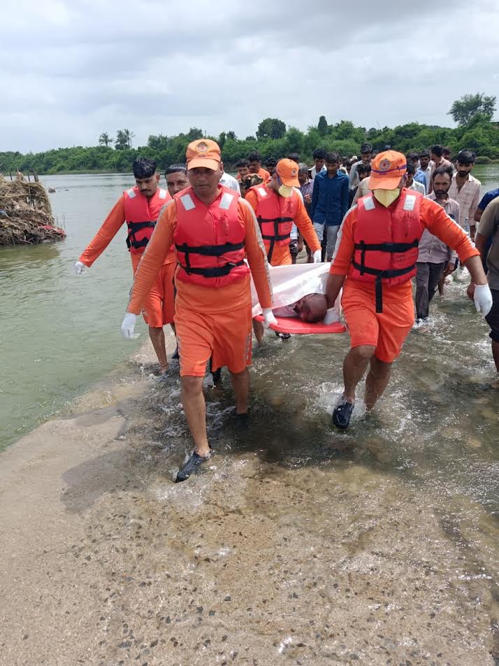 ભાવનગર જિલ્લાના તળાજા તાલુકાના ટીમાણા ગામથશેત્રુંજી નદીના કોઝવે પરથી પસાર થતાં સમયે વૃદ્ધ ખેડૂત વલ્લભભાઈ નાનજીભાઈ માંગુકિયા ટ્રેક્ટર સાથે નદીમાં ખાબક્યા હતા. છે.NDRFની ટીમે 6 થી 7 કલાકની જહેમત બાદ મૃતદેહ બહાર કાઢ્યો હતો.