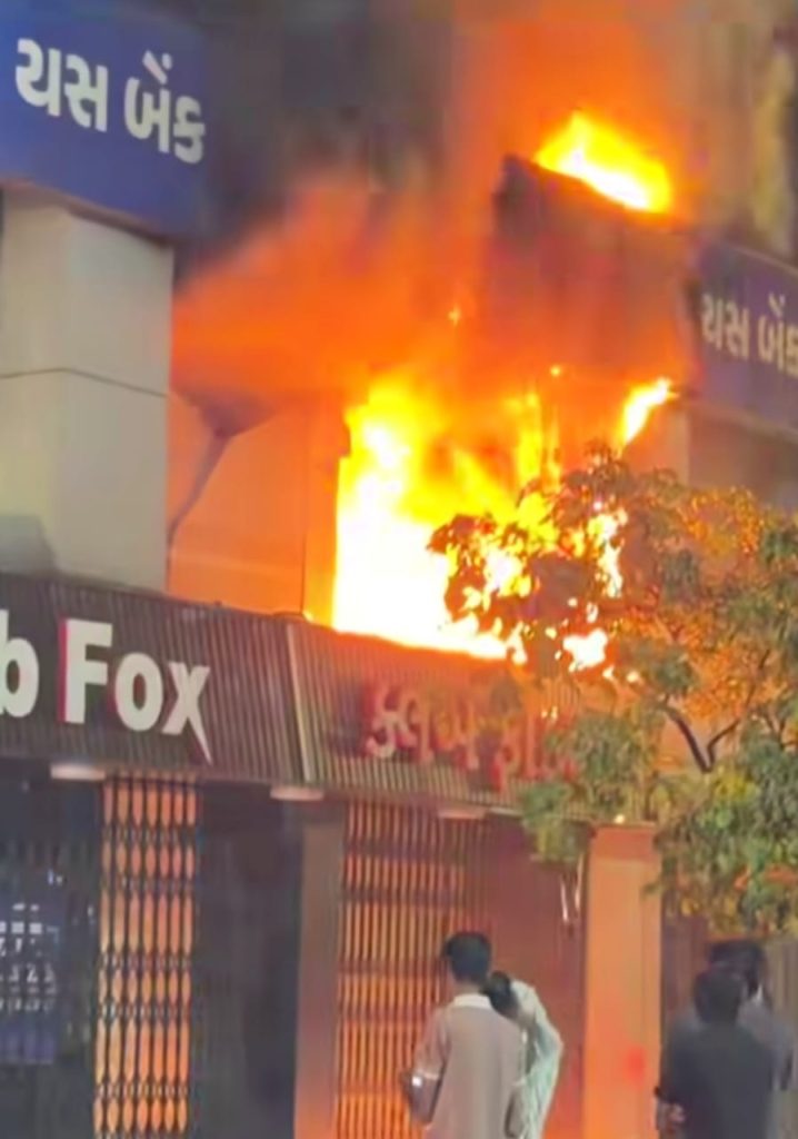 શહેરના યાજ્ઞનીક રોડ ઉપર જિલ્લા પંચાયત ચોક ખાતે બિલ્ડિંગના પહેલા માળે આવેલ યસ બેંકમાં ગઈ કાલે રાતે 11.35 વાગ્યા આસપાસ આગ લાગી હતી. જે બાદ ધીમે-ધીમે આગે વિકરાળ સ્વરૂૂપ ધારણ કરી લીધું હતું. આગ લાગવાના કારણે વધુ ગરમ થવાથી બેંકની બારીના કાચ ફૂટી નીચે રોડ પર ફૂટી રહ્યા હતા. આગ લાગવાની જાણ તાત્કાલિક પોલીસ અને ફાયર વિભાગને કરવામાં આવતા પોલીસ ટ્રાફિક કિલયર કરાવતા ત્રણ જેટલા ફાયર ફાઈટરની મદદથી આગ પર પાણી મારો ચલાવી કાબૂ મેળવવા પ્રયાસ શરૂૂ કરવામાં આવ્યા હતા.પ્રથમ બેંકના આગળના ભાગમાં પાણીનો મારો ચલાવી આગ પર કાબૂ મેળવવામાં આવ્યો હતો. જો કે થોડી મિનિટો બાદ ફરી આગ શરૂૂ થતા બાદમાં કટરની મદદથી બેંકનું શટર લોક તોડી બેંકમાં અંદર પ્રવેશ કરી અંદરની બાજુથી પણ પાણીનો મારો ચલાવી.