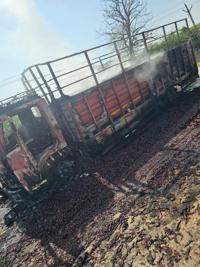 કોટડાસાંગાણી તાલુકાના નાના વડીયા ગામે રહેતા મયુર સિંહ સુરેન્દ્રસિંહ જાડેજા ની વાડીએ મરચા ભરીને રોડ ઉપરથી અચાનક મરચાં ભરેલી ગાડીમાં આગ લાગતાં હતાં ગાડીમાં બેઠેલા ત્રણ લોકો ગાડીમાં મરચાં ભરેલી ગાડીમાં ઉપરથી ઉતરી ગયેલ અને એકદમ ધુવાડા નીકળેલ અને ગાડી માલિક પાંચા ભાઈ હકા ભાઈ મેર રે ફાઈબીગેરને જાણ કરી ને તાત્કાલિક ગોંડલથી આવેલ અને બે ફાઈરબીગેડ ગાડી ઘટના થરે આવેલ પણ સુકા મરચાં ભરેલી ગાડીમાં 8:30 ટન બરીને ખાખ થઈ ગયેલ અને આયસર ગાડી નંબર જીજે 33 ટી 3823 નંબર ની ગાડી બરીને ગયેલ અને ગાડી ની કિંમત રૂૂ 19 લાખ રૂૂપિયાની નુકસાની થયેલ અને મરચાં 8:30 ટન મરચા તેમની કિંમત રૂા.16,15,500 અંદાજી કિંમત થઈ રહી છે જેમાં દર સાલ મરચાની ખરીદી કરવા માટે નાના વડીયા ગામે વેપારીઓ આવતા હોય છે.