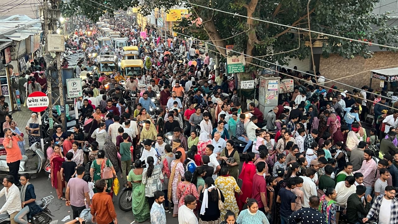 દિપાવલીના તહેવારો પૂર્વે રાજકોટ સહિત સમગ્ર ગુજરાતમાં ભારે ઉત્સાહ-ઉમંગ જોવા મળી રહયો છે અને બજારોમા ખરીદીની આતશબાજી સર્જાઇ હોય તેમ રાજકોટ શહેરની બજારોમાં લોકો ખરીદી માટે ઉમટી પડયા હતા અને જુના રાજકોટની ધર્મેન્દ્ર રોડ, લાખાજીરાજ રોડ, સાંગણવા ચોક, ગુંદાવાડી સહિતનાં વિસ્તારોમાં અકડેઠઠ મેદની ઉમટી પડતા મોડી રાત સુધી પગ મુકવાની જગ્યા મળે નહીં તેવી સ્થિતિ જોવા મળી હતી. અચાનક નીકળેલી સારી ઘરાકીના કારણે વેપારીઓનાં મોઢા ઉપર પણ લાલી આવી ગઇ છે.