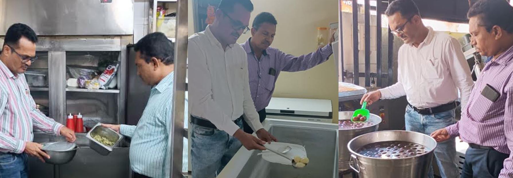જેમાં 05 ધંધાર્થિઓને લાઇસન્સ બાબતે સૂચના આપવામાં આવેલ. તેમજ ખાધ્ય ચીજોના કુલ 20 નમૂનાની સ્થળ પર ચકાસણી કરેલ. (01)પરાગ સેન્ડવીચ -લાઇસન્સ મેળવવા બાબતે સૂચના (02)તિરુપતિ મદ્રાસ કાફે -લાઇસન્સ મેળવવા બાબતે સૂચના (03)કિરણ ડ્રાયફૂટસ -લાઇસન્સ મેળવવા બાબતે સૂચના (04)રોયલ ફાસ્ટફૂડ -લાઇસન્સ મેળવવા બાબતે સૂચના (05)જગદંબા ટેડ્ર્સ -લાઇસન્સ મેળવવા બાબતે સૂચના આપવામાં આવેલ. તથા (06)પટેલ રેસ્ટોરેન્ટ (07)બાલાજી ધ મેગી સેન્ટર (08)બાલાજી સેન્ડવીચ (09)સાગર વડાપાઉં (10)ડિઝાયર ફૂડ (11)રાધિકા આઇસ્ક્રીમ (12)મુરલીધર ફરસાણ (13)પારસ ફરસાણ (14)પ્રણામી ફરસાણ (15)ધુબાકા શીંગ (16)રાજ વસ્તુ ભંડાર (17)ઇટાલિયન બેકરી (18)બાલાજી શોપીંગ સેન્ટર (19)બાલાજી ફરસાણ માર્ટ (20)કોમલ રેસ્ટોરેન્ટની ચકાસણી કરવામાં આવેલ.