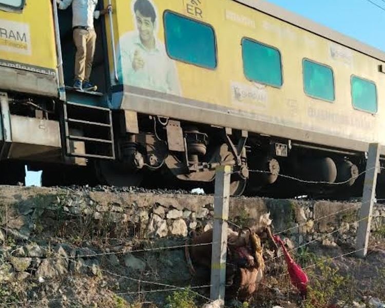 ગાંધીનગરથી ઓખા તરફ જઈ રહેલી ટ્રેન ના એન્જીન હેઠળ ગઈકાલે રાત્રિના સમયે બે ગાય અને બે ખૂંટિયા સહિતના ચાર ગૌવંશ કપાઈ જવાથી મૃત્યુ પામ્યા હતા. વહેલી સવારે કેટલાક ગૌ પ્રેમીઓ ને જાણ થતાં તેઓ ઘટના સ્થળે દોડી ગયા હતા, અને રેલવેના પાટા નજીકથી ચારેય ગૌવંશના કપાયેલા મૃતદેહોને દૂર કર્યા હતા.